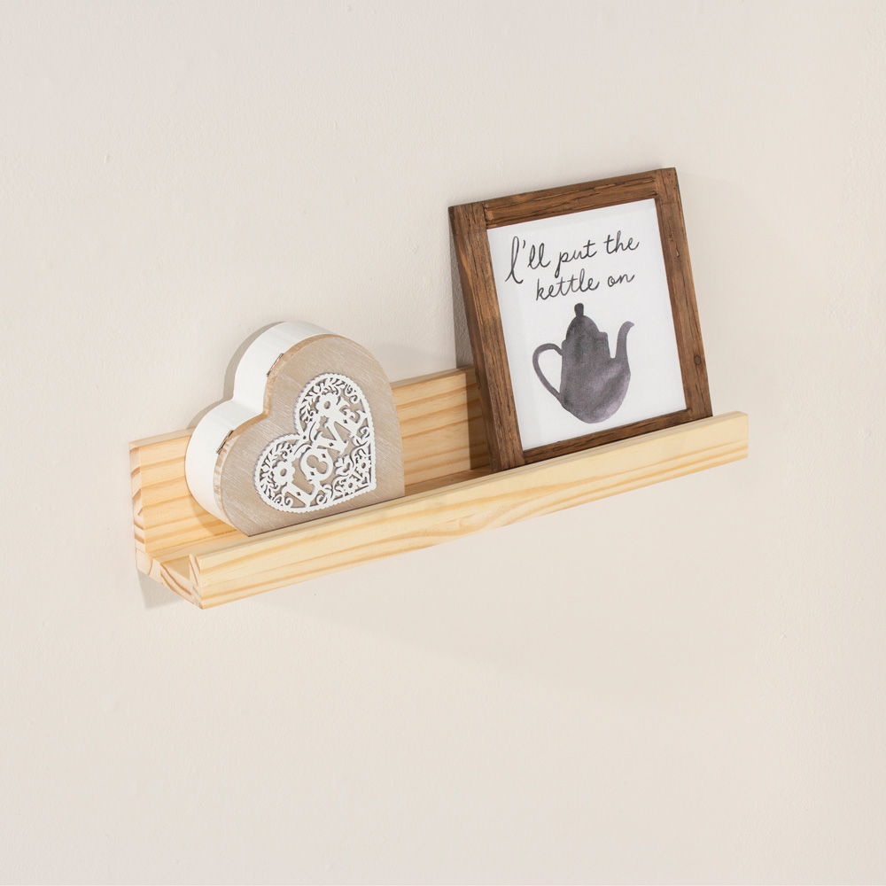 Perfect for showcasing books, photos, or small decor, this Core Products Sanded Wood Display Shelf Kit 48cm is crafted from responsibly sourced natural pine. Features the unfinished surface that allows for personalisation with any suitable paint or stain. Supplied with fittings and fixings for most wall types. Supports up to 1kg when mounted on a solid brick or wood wall.