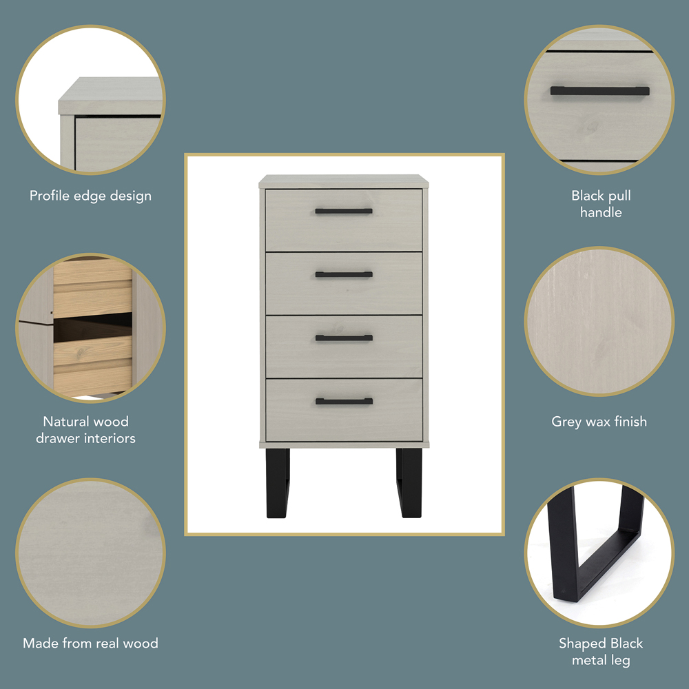 Core Products Texas 4 Drawer Grey Waxed Pine Narrow Chest of Drawers
