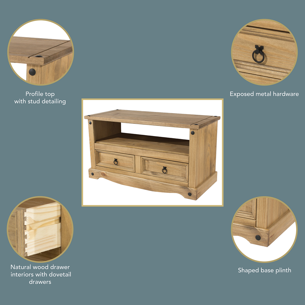 Corona 2 Drawer Antique Wax Finish Flat Screen TV Unit