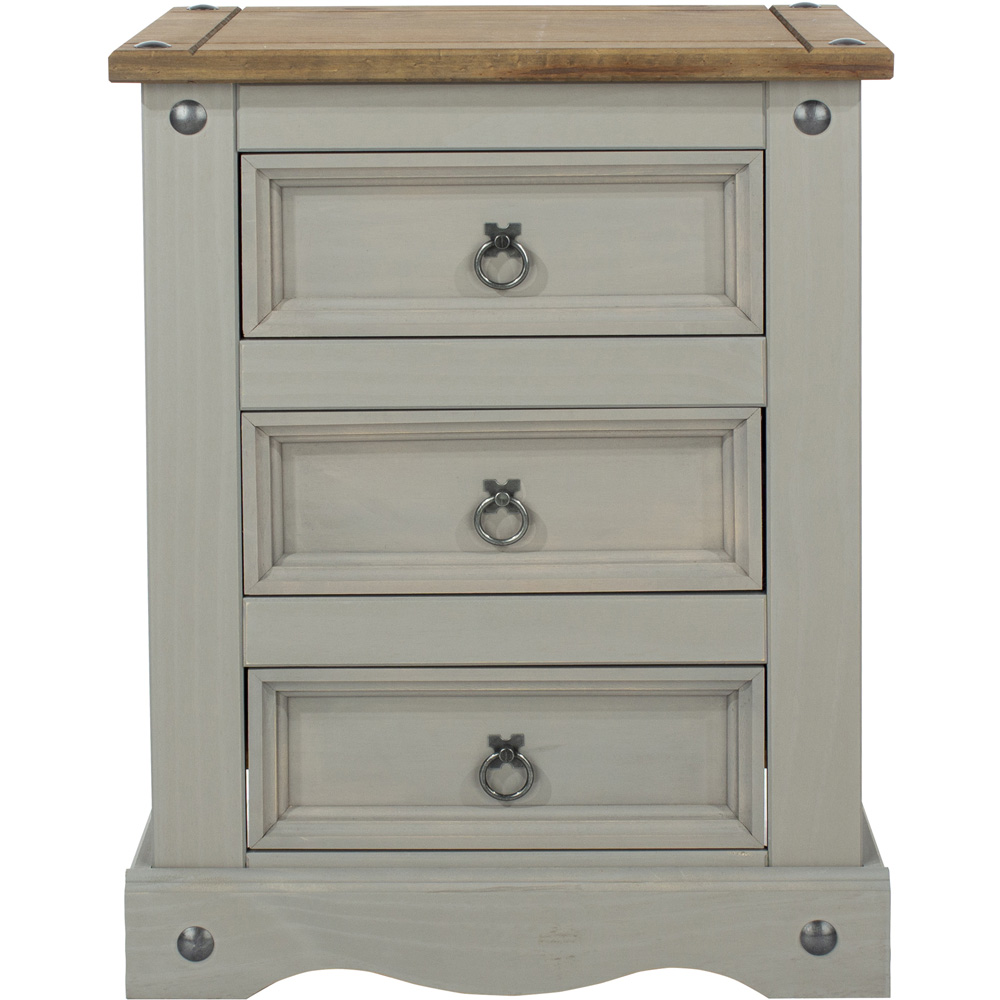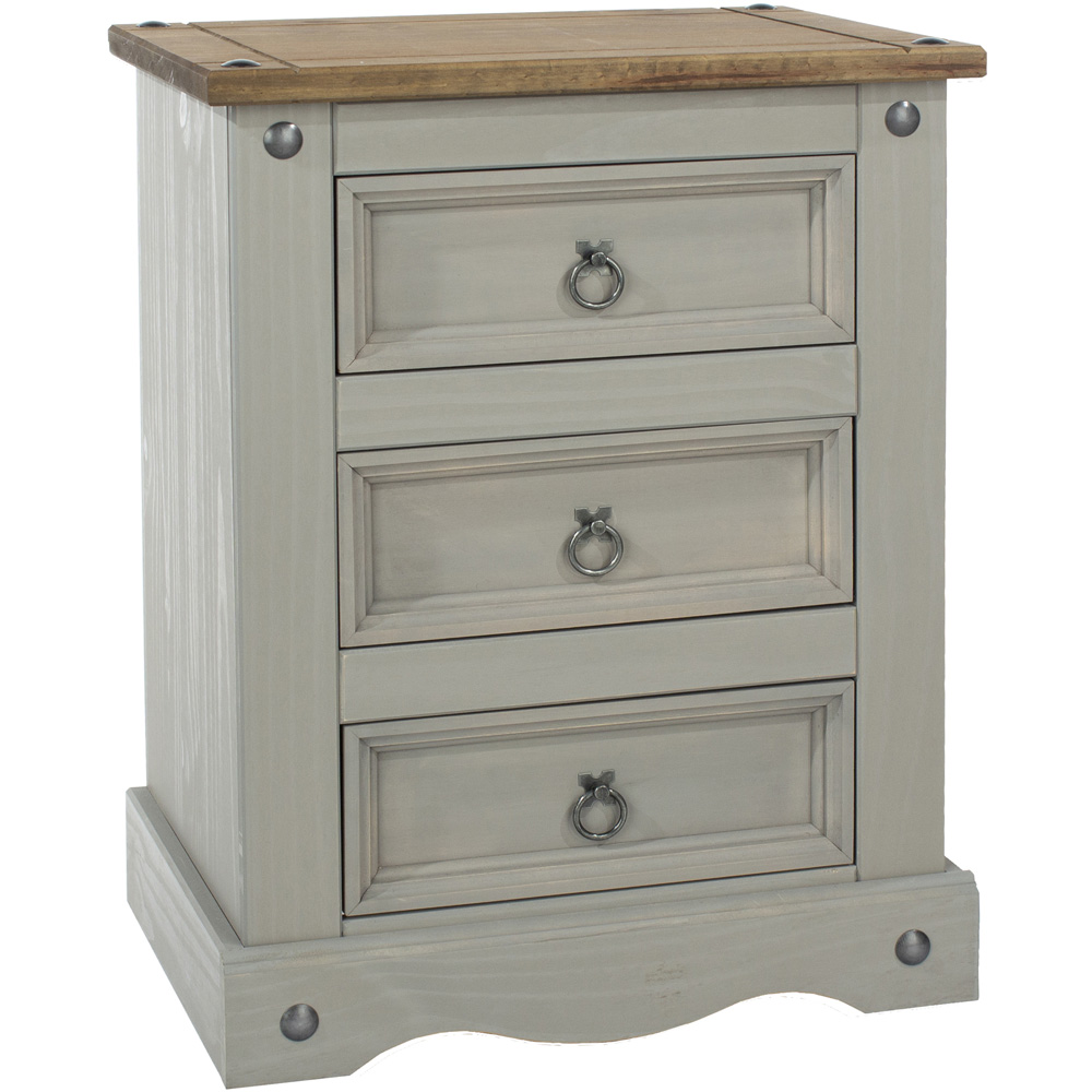 Corona 3 Drawer Grey Washed Wax Bedside Table