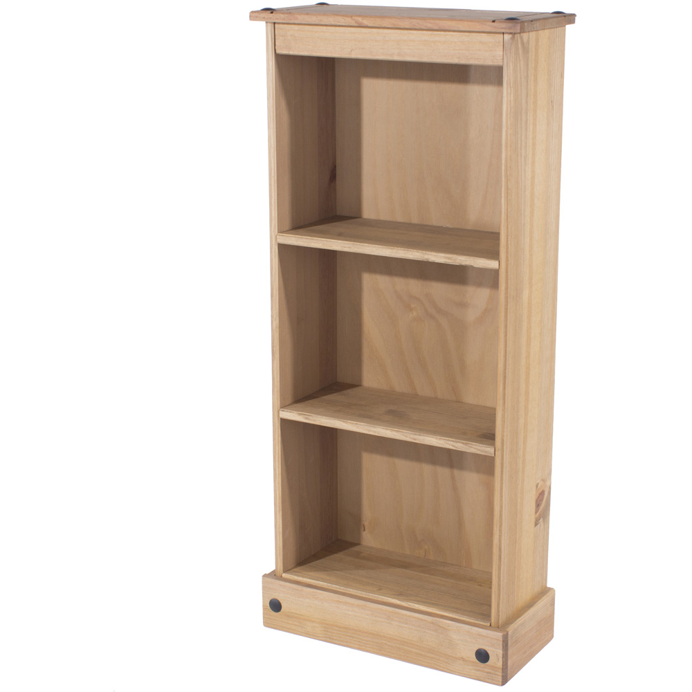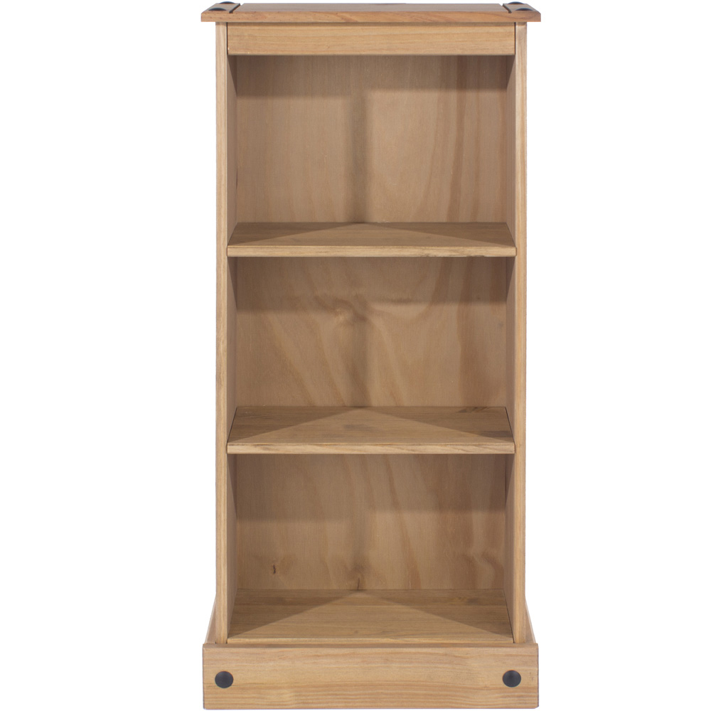 Corona 3 Shelf Antique Wax Finish Low Narrow Bookcase