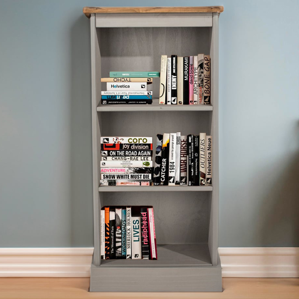 Corona 3 Shelf Grey Wax Finish Low Narrow Bookcase