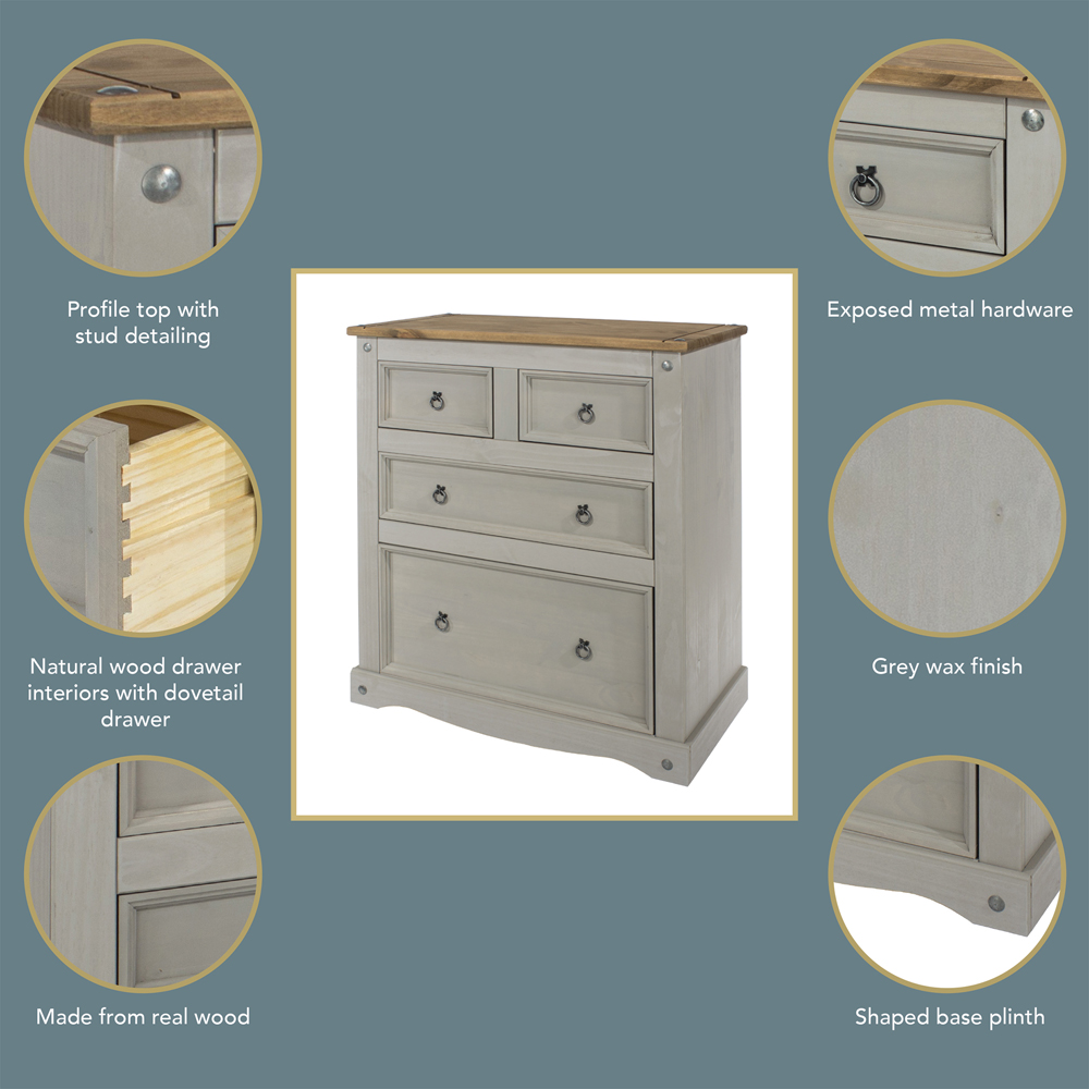 Corona 4 Drawer Grey Washed Wax Chest of Drawers