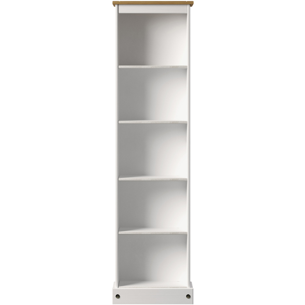 Corona 5 Shelf White Washed Wax Finish Tall Narrow Bookcase