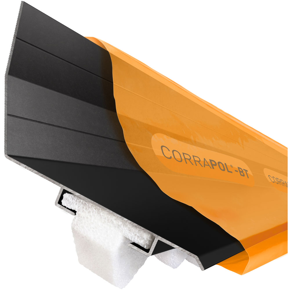 Fast, easy installation is a key feature of the black Corrapol BT 2m Rock n Lock Wall Top Flashing. This unique aluminium side flashing is perfect for corrugated sheets butted against a wall. Simply Rock n Lock it onto the end corrugation of your Corrapol BT sheets for superior protection and maximum longevity thanks to its durable aluminium extrusion.
