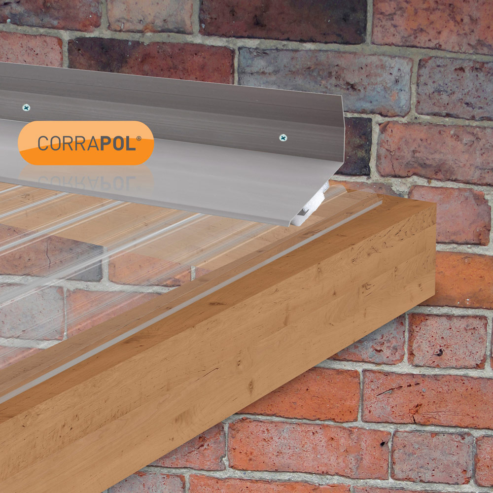 This aluminium wall flashing offers superior protection for corrugated sheets where the side meets a wall. Designed for simple and secure fixing, it',s ideal for achieving a reliable installation. Simply secure it to the wall and then cover with lead flashing. Its aluminium construction ensures maximum longevity. Available in a 6m length.
