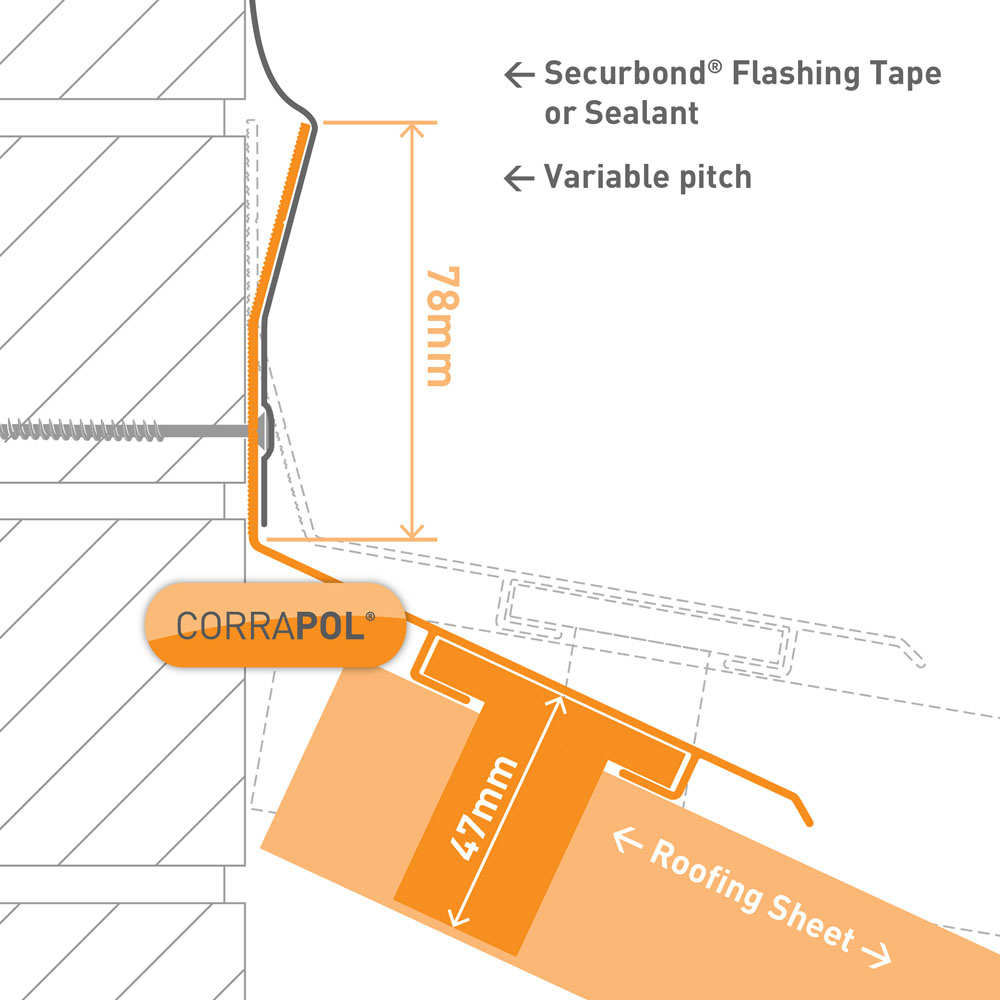 Fast, easy installation is a key feature of the 3M Corrapol White Rock n Lock Wall Top Flashing. This unique aluminium side flashing is perfect for corrugated sheets installed against a wall. The Rock n Lock design securely attaches to the end corrugation of Corrapol sheets. Made from strong aluminium for long life, it includes a foam gasket for superior weather protection.