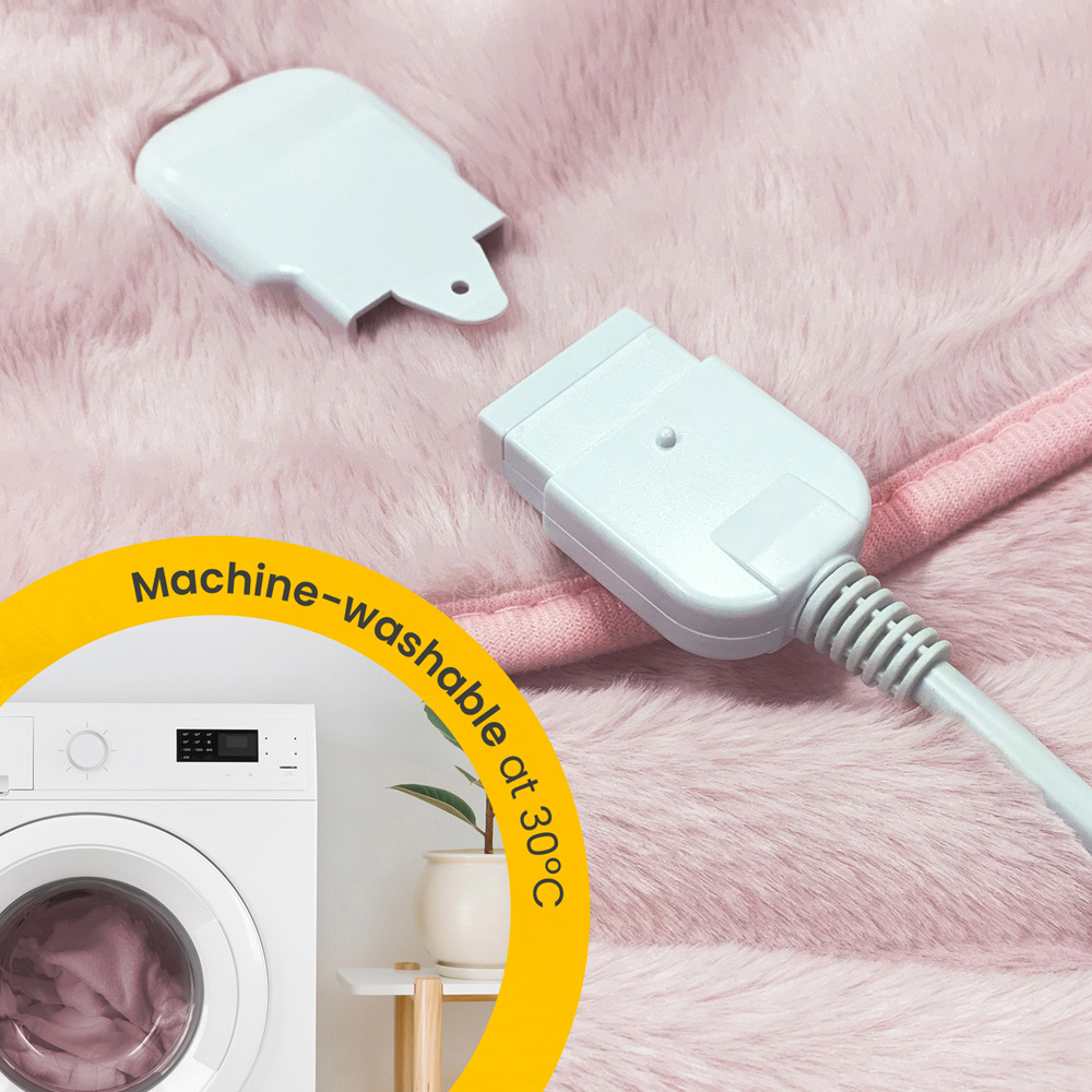 Snuggle up in luxurious comfort with the Cosi Home Pink Faux Fur Electric Heated Throw. This generously sized (160 x 130cm) throw combines plush faux fur and soft microfleece for ultimate coziness. Nine adjustable heat settings let you find your perfect temperature, while the built-in 9-hour timer with auto shut-off adds convenience and safety. Advanced overheat protection provides extra peace of mind, and at only 3p per hour to run, it's economical too. Easy care: simply remove the detachable controller before machine washing on a low temperature.