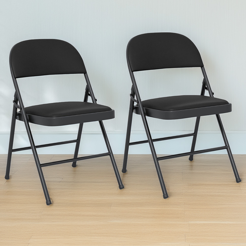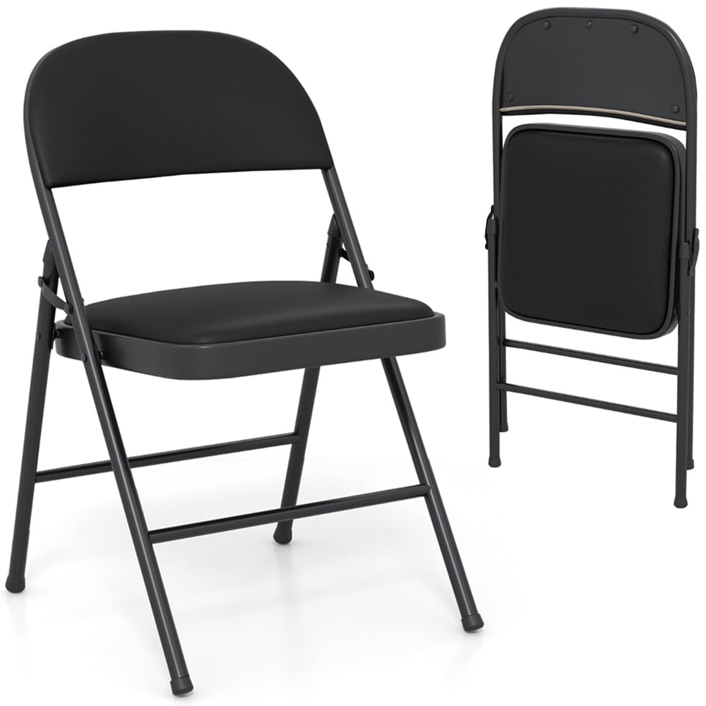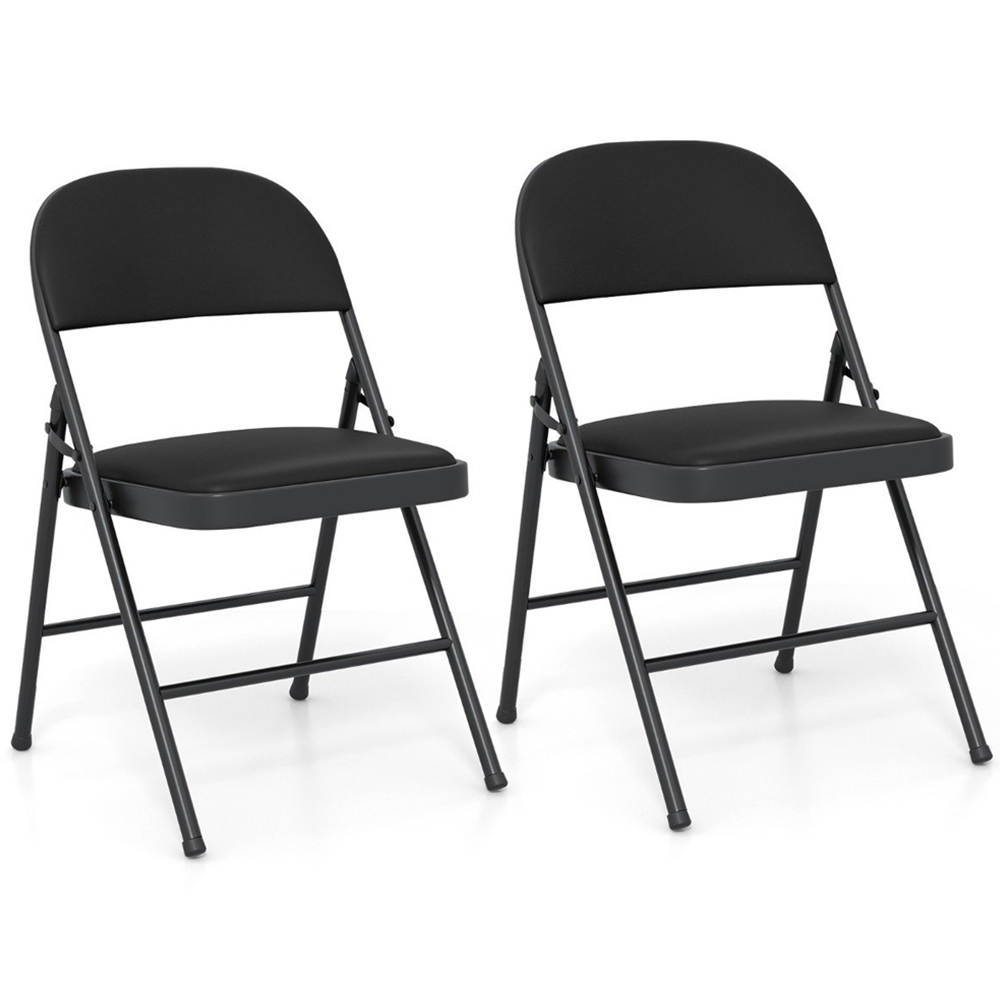 Costway Black PVC Leather Foldable Stackable Chair Set of 2