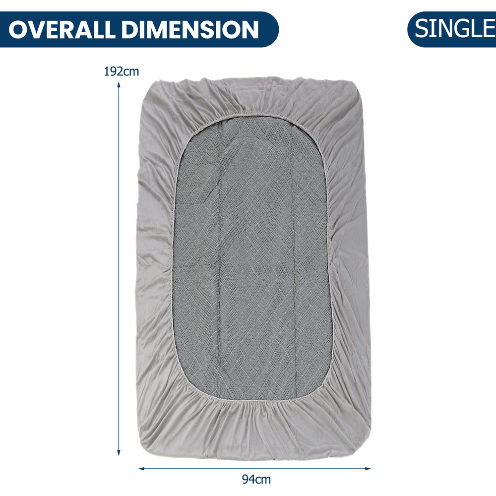Elevate your sleeping experience with this Costway Grey Twin Size Luxury Super Soft Velvet Mattress Protector, designed for ultimate comfort and breathability. Made from a soft velvet surface, it promotes airflow to keep you cool and dry throughout the night. The stylish square jacquard seam enhances durability while adding an element of sophistication to your bedding, ensuring it remains wrinkle-free and long-lasting. Featuring a deep elastic pocket, this mattress topper fits securely on mattresses up to 41cm thick, providing a protective layer that shields your mattress from dirt and wear. Its multi-layer structure, filled with a plush sponge, creates a cosy sleeping surface that caters to the needs of the entire family. Designed for convenience, this topper is easily foldable and lightweight, making it perfect for compact living spaces or travel. Discover the comfort you deserve and enjoy restful nights with this innovative mattress solution.