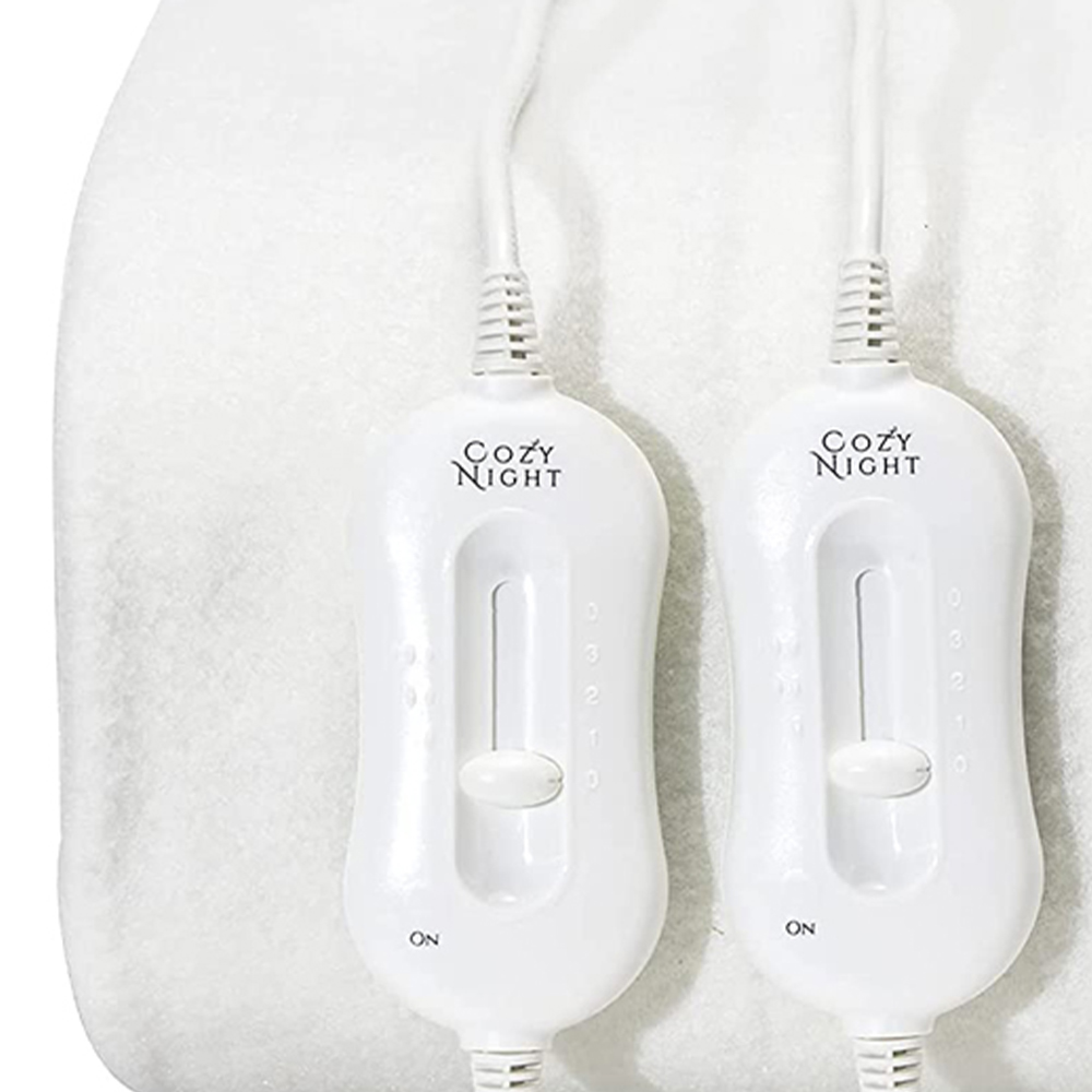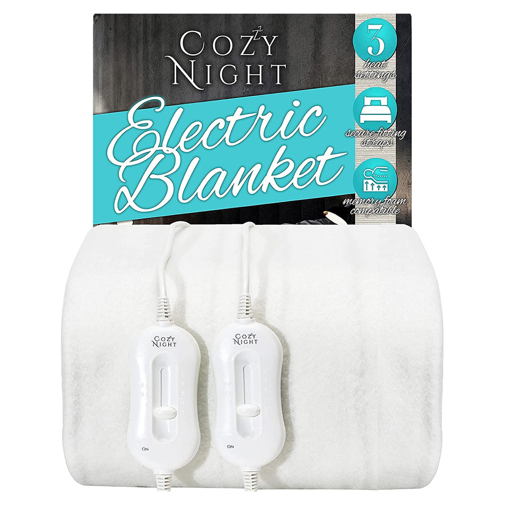 Experience the ultimate in cosy comfort with the cosy Night Double Fitted Electric Blanket. Enjoy three heat settings, perfectly tailored to your needs year-round. This energy-efficient blanket boasts a low 70W per control wattage, so you can sleep soundly knowing you're doing your part for the planet. Memory foam compatibility and overheat protection ensure a worry-free night's sleep. Effortlessly fitting the entire mattress surface, simply secure the straps at each corner for a seamless setup. A convenient zip-up storage bag is included for easy out-of-season storage. Easily maintain its pristine condition with detachable controls and simple washing instructions. Measures 192 x 140cm.