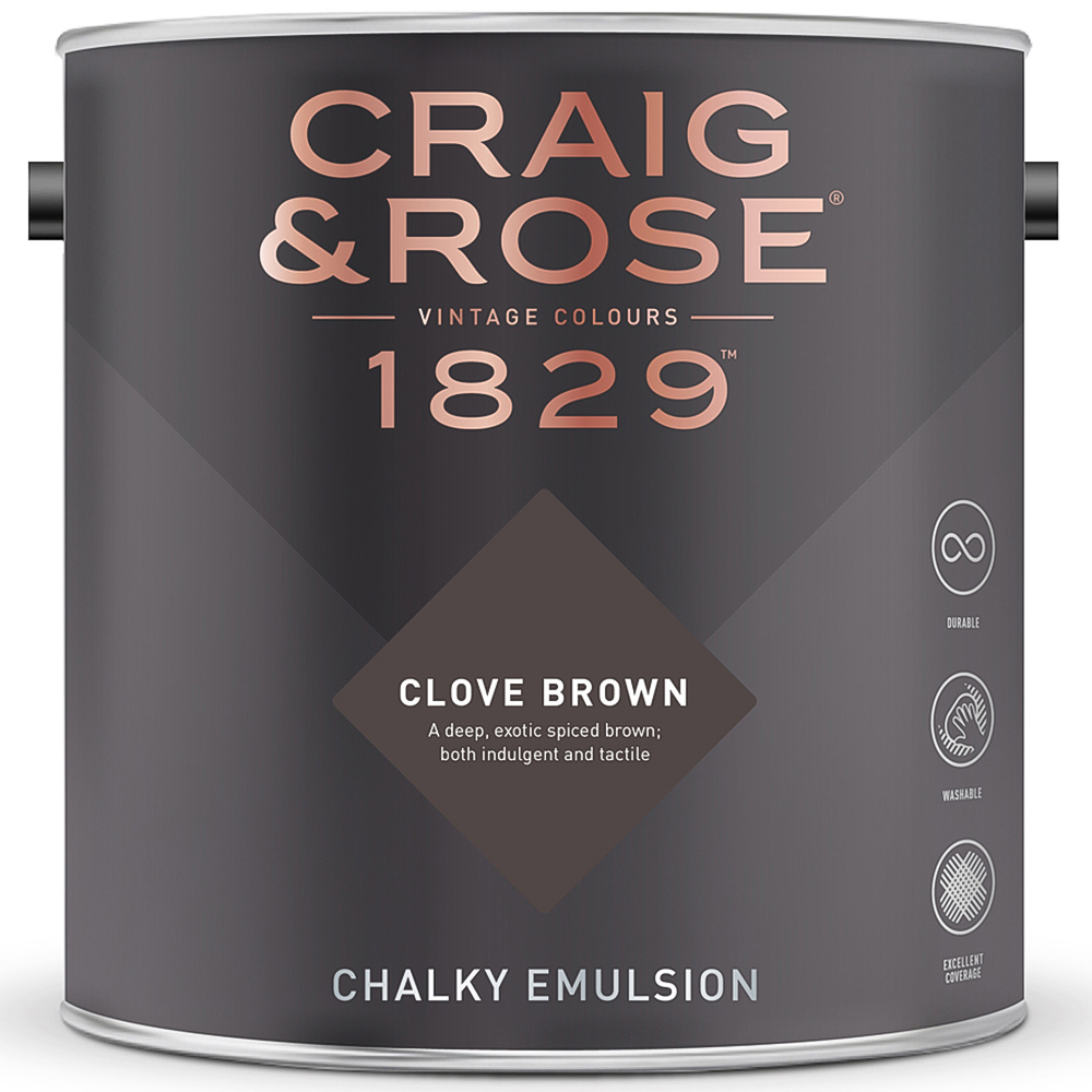 Craig & Rose 1829 Vintage Walls and Ceilings Clove Brown Chalky Matt Emulsion Paint 2.5L