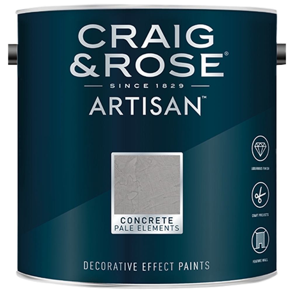 Transform your space with Craig &, Rose Artisan Walls &, Ceilings Concrete Pale Elements Matt Paint. This premium concrete effect paint delivers the sophisticated look of polished concrete, effortlessly. Its lightest shade offers a subdued elegance, perfect for adding character and texture to any space. Imagine the stylish industrial feel, softened like Carrera marble, or boldly contrasted with copper and matt black accents. Achieve a raw, rigid finish or a smooth, polished, waxed effect – the tactility is entirely up to you. For best results, apply three coats using a long pile roller for smaller areas, smoothing each coat with a steel trowel between applications. Light sanding completes the look. Available in a 2.5L tin.