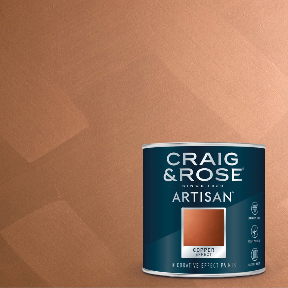 Transform your space with the captivating allure of copper using Craig &, Rose Artisan Walls &, Ceilings Copper Effect Mid Sheen Paint. This 750ml pot delivers the rich, luminous sheen of copper, perfect for breathing new life into doors, details, and décor – indoors and out. Imagine brushed, bruised, or polished copper accents on your furniture, or even a modern update to your garden ornaments. Achieve the ideal copper finish by meticulously following the application instructions. Use it to create a stunning focal wall, or combine it with other metallics and colours for a contemporary twist.