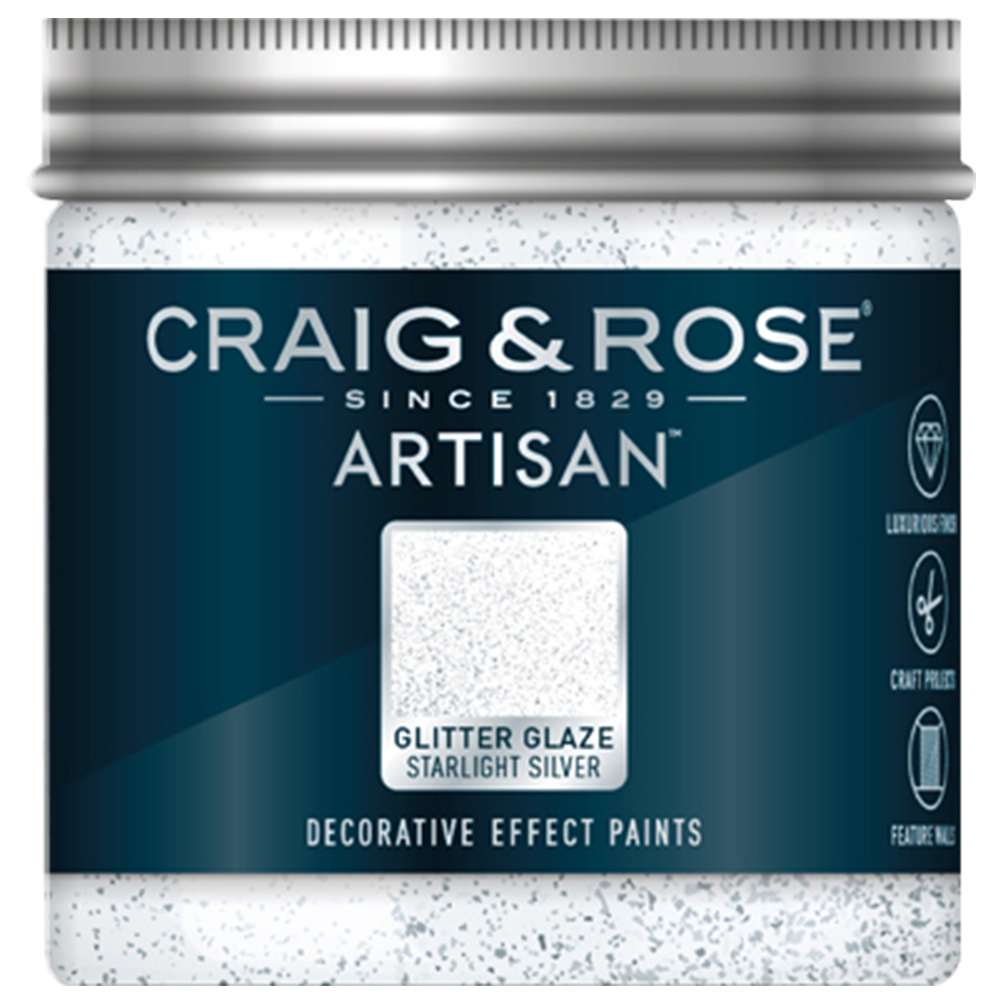 Craig & Rose Artisan Walls & Ceilings Glitter Glaze Starlight Silver Paint 300ml
