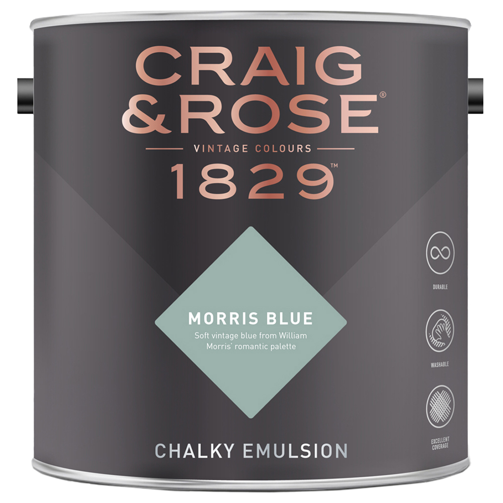 Craig & Rose Walls and Ceilings Morris Blue Chalky Matt Emulsion Paint 2.5L