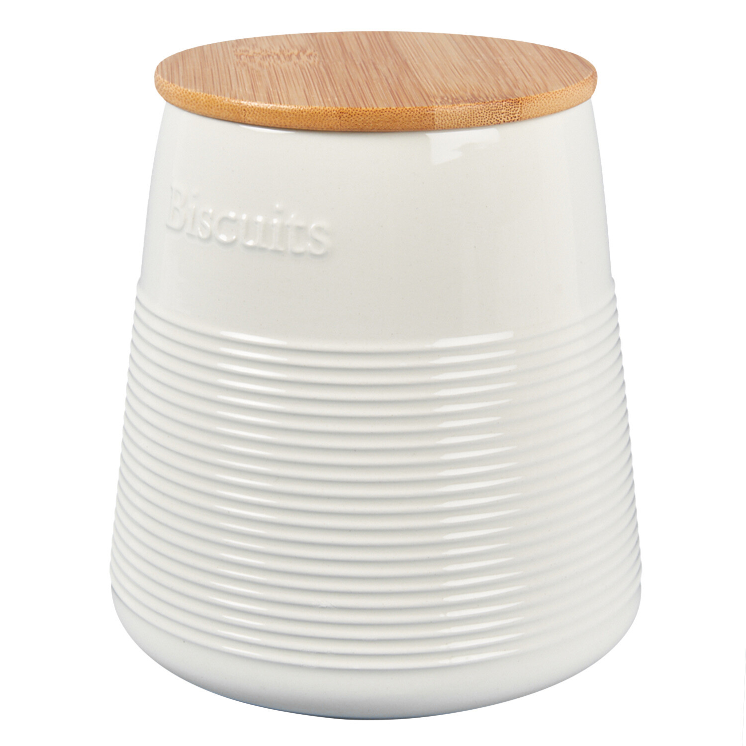 This ceramic Conical Canister offers a stylish storage solution for your kitchen. Boasting a distinctive conical shape and embossed with horizontal lines, it provides an elegant design. The glossy sheen and classic aesthetic ensures it will complement any kitchen décor, whilst keeping your stored food items fresh and dry.