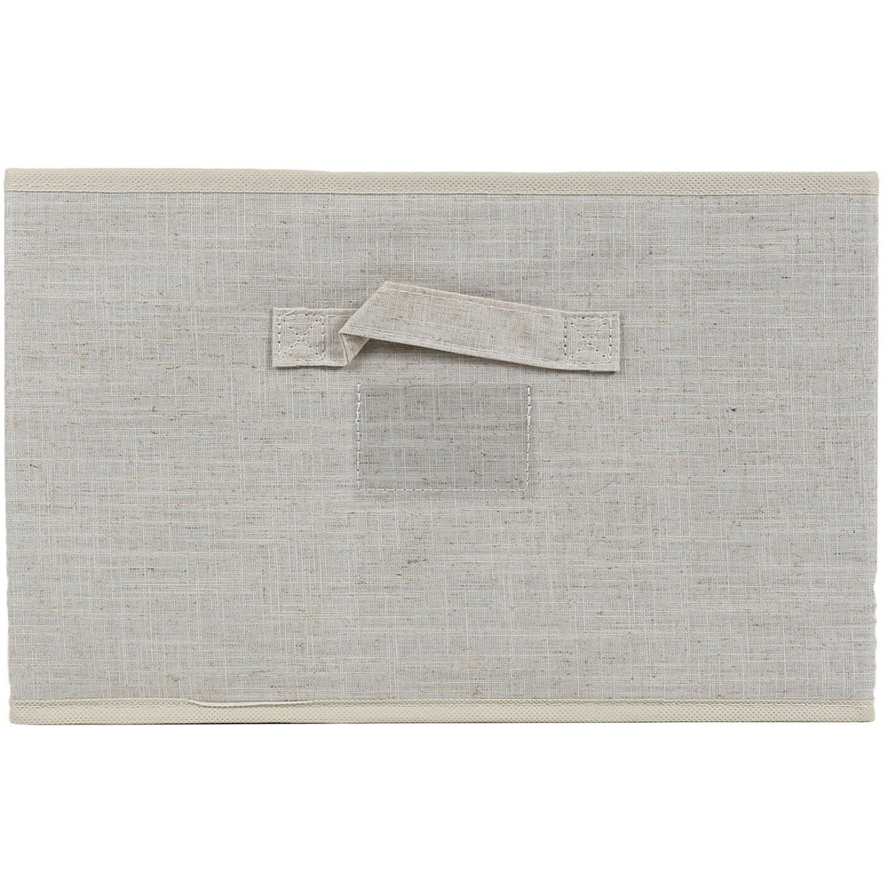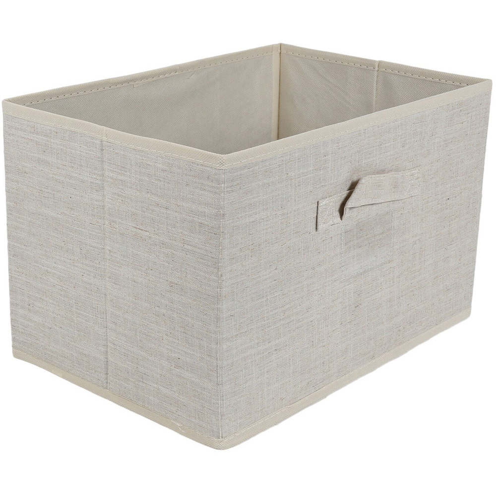 Storage sorted. This large linen storage box offers both style and practicality, perfect for taming clutter in your home. Ideal for clothes, shoes, toiletries, games, and more, it keeps your belongings organised. A convenient handle ensures effortless mobility, while a label slot lets you instantly identify contents. Plus, it folds flat for space-saving storage when not in use.