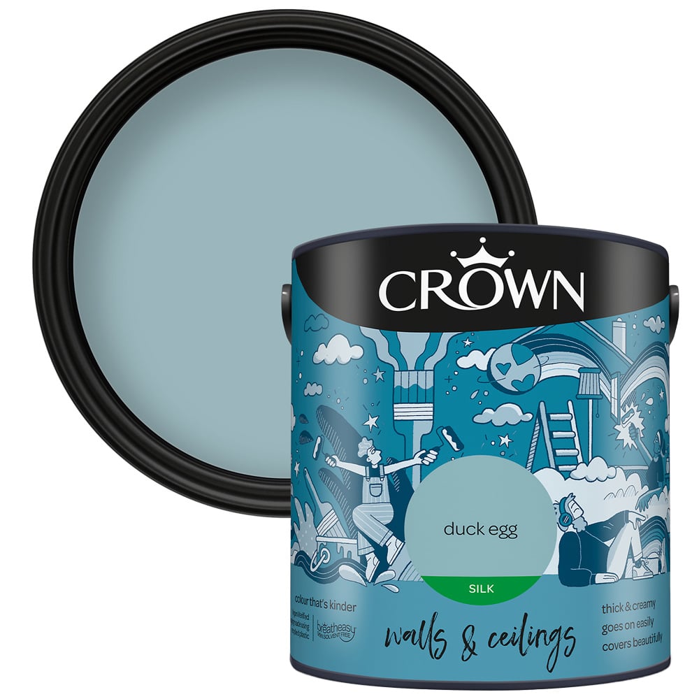 Crown Breatheasy Walls & Ceilings Duck Egg Silk Emulsion Paint 2.5L