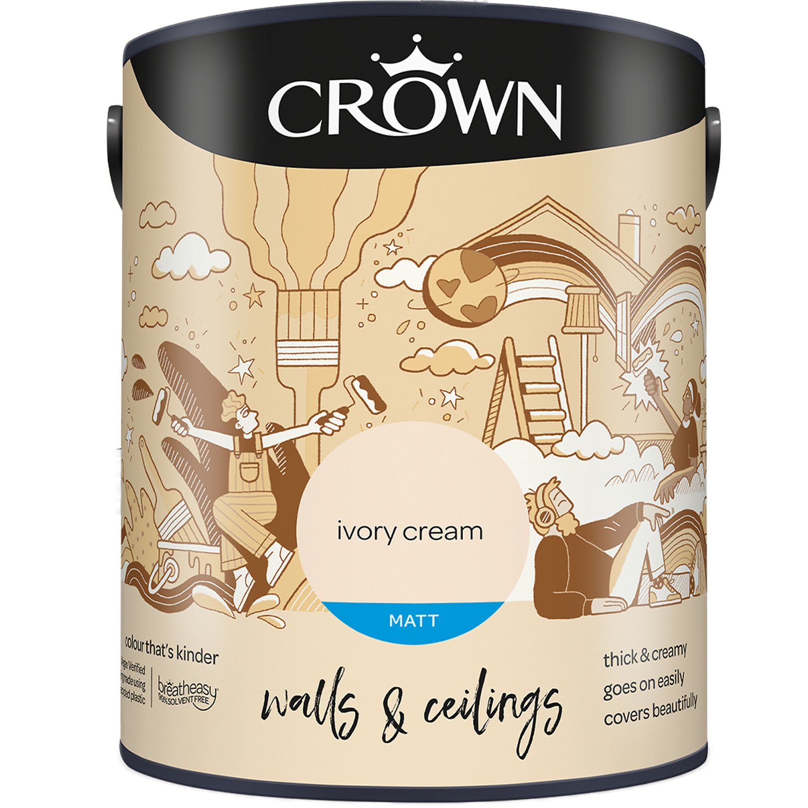 The Crown Breatheasy Matt Emulsion Paint is a high quality, rich and creamy paint that will bring a professional finish to your walls. Ideal for creating a modern look with a stunning flat colour, this paint is ideal fo use on walls and ceilings. Crown's Breatheasy Paint is 99% solvent-free for safe and easy application.
