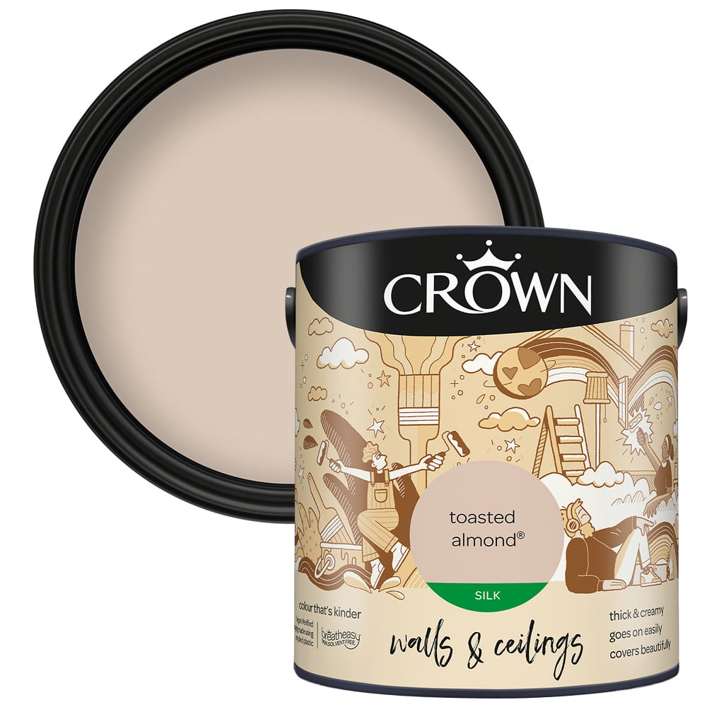 Crown Breatheasy Walls & Ceilings Toasted Almond Silk Emulsion Paint 2.5L