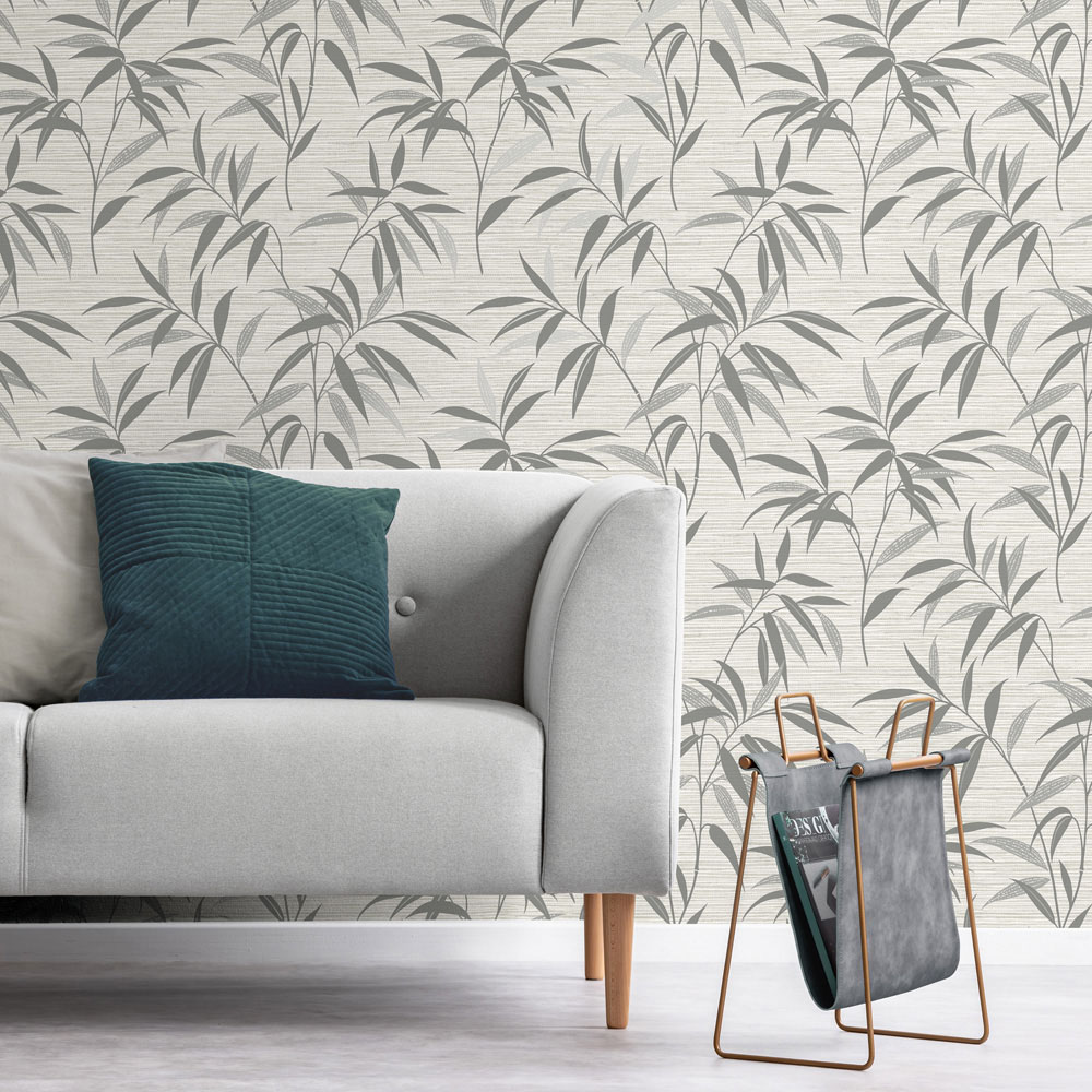 Crown Fusion Leaf Soft Grey Wallpaper brings luxurious style to your home. Intricate bamboo leaves with metallic highlights stand out against a realistic grasscloth texture, creating a striking feature wall. Its luxurious feel and timeless design, crafted with water-based inks, complement any interior. Pair it perfectly with the coordinating fusion textured plain wallpaper for a cohesive look.