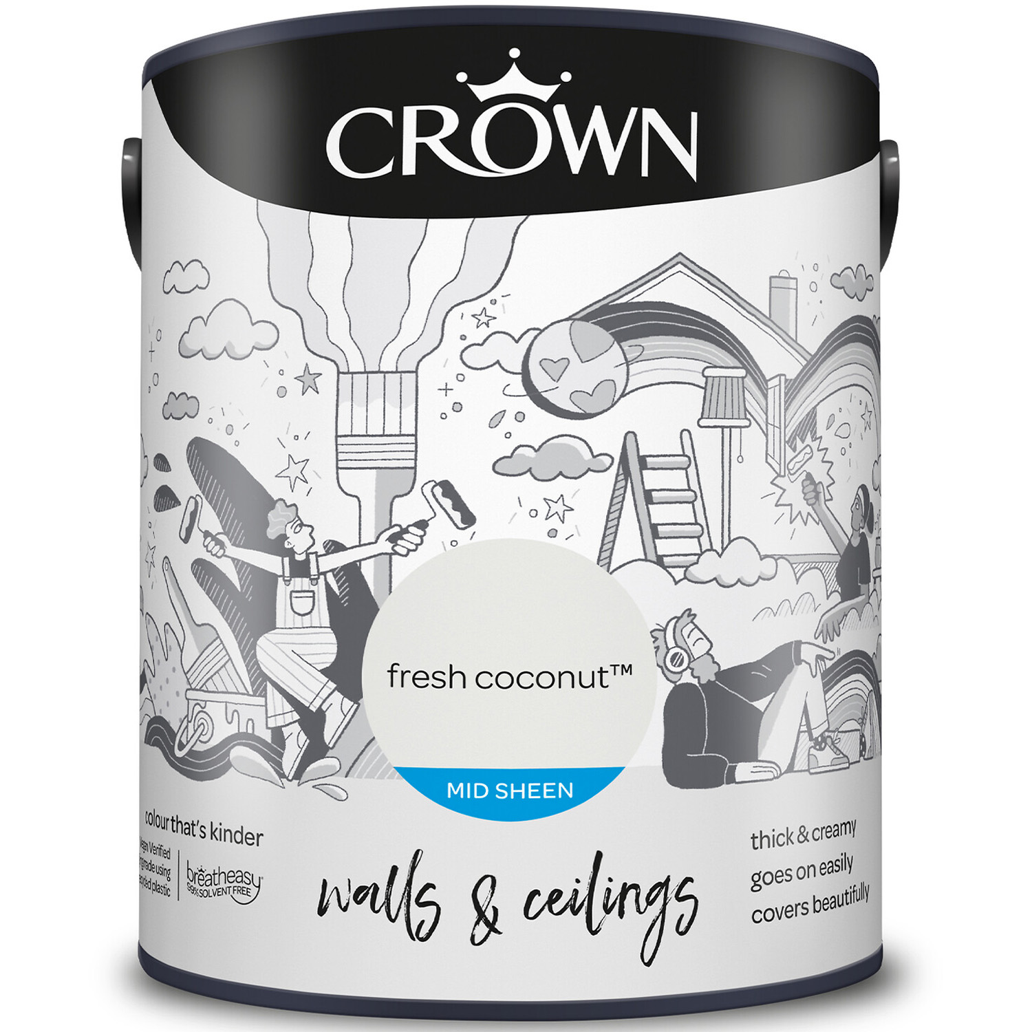 Crown Walls and Ceilings Mid Sheen Emulsion provides a rich, reflective finish, for a subtle surface shine. Offering excellent versatility and complete coverage, this water-based paint can be applied throughout your entire home including living rooms, dining rooms, bedrooms and hallways. Using carefully selected Vegan Verified ingredients, Crown’s unique breatheasy® 99% solvent-free formulation offers you the confidence to decorate your home safely. Limiting exposure to airborne triggers of asthma and allergy, it helps create a healthier space for your whole family; and we are pushing what's possible even further with packaging made using recycled plastic. This durable paint is sure to give your home a new lease of life and is wipeable so you can keep your walls looking their best.