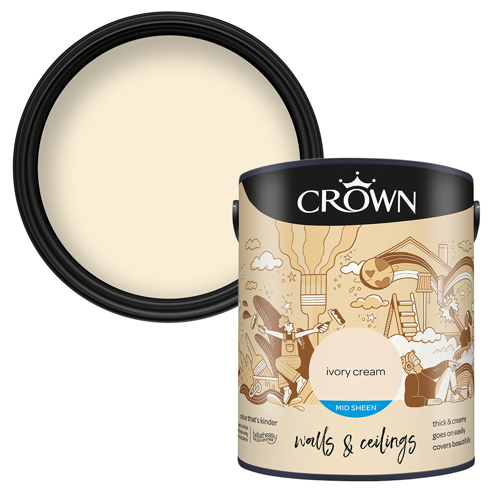 Crown Walls and Ceilings Mid Sheen Emulsion provides a rich, reflective finish, for a subtle surface shine. Offering excellent versatility and complete coverage, this water-based paint can be applied throughout your entire home including living rooms, dining rooms, bedrooms and hallways. Using carefully selected Vegan Verified ingredients, Crown’s unique breatheasy® 99% solvent-free formulation offers you the confidence to decorate your home safely. Limiting exposure to airborne triggers of asthma and allergy, it helps create a healthier space for your whole family; and we are pushing what's possible even further with packaging made using recycled plastic. This durable paint is sure to give your home a new lease of life and is wipeable so you can keep your walls looking their best.