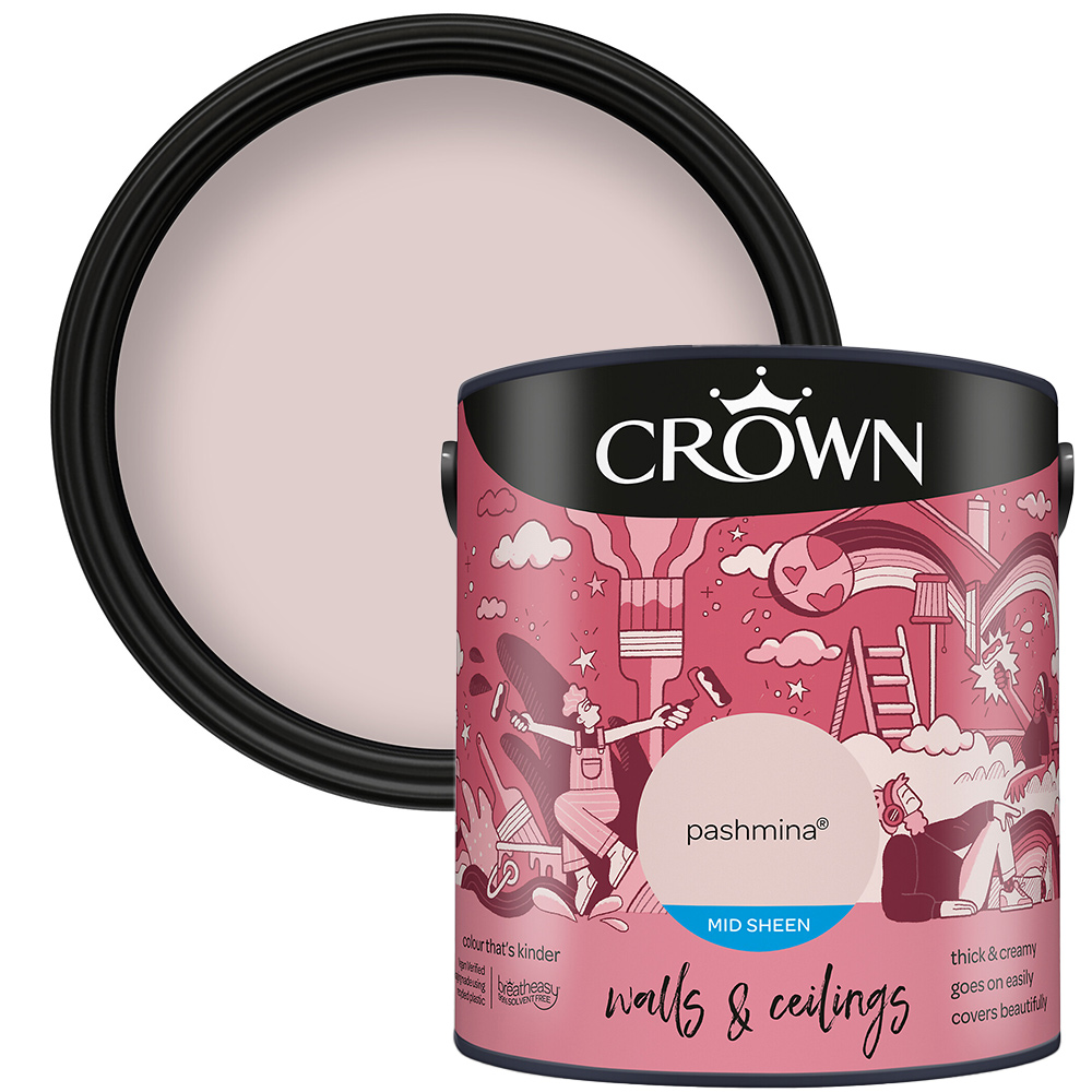 Crown's Mid Sheen Emulsion provides a rich, reflective finish for a subtle surface shine. Offering excellent versatility and complete coverage, this water-based paint is perfect for living rooms, dining rooms, bedrooms, and hallways throughout your home. Enhance your living space with its durable, wipeable finish. Introducing Breatheasy—our leading 99% solvent-free formulation. Using carefully selected Vegan Verified ingredients, this unique paint lets you decorate safely, creating a healthier environment for your family by limiting exposure to airborne asthma and allergy triggers. We're even pushing boundaries with packaging made from recycled plastic. Give your home a new lease on life.