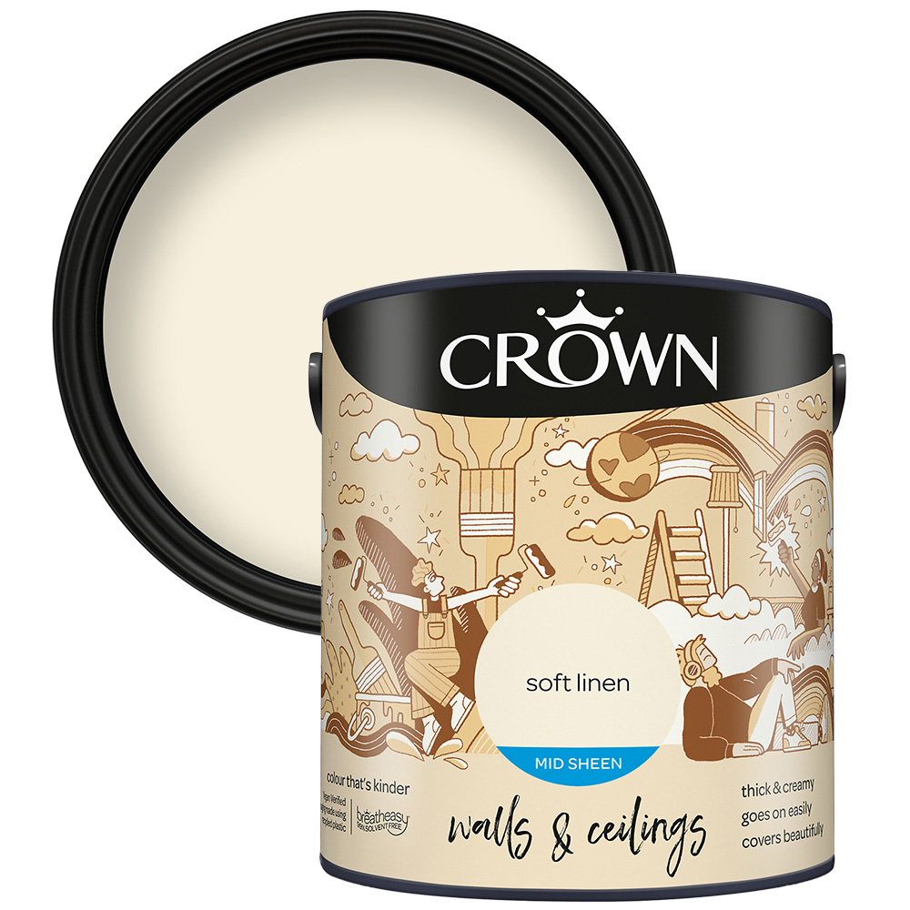 Crown's Mid Sheen Emulsion: Achieve a rich, reflective finish with a subtle surface shine. This versatile, water-based paint provides complete coverage for living rooms, dining rooms, bedrooms, and hallways. Enhance your home with its durable, wipeable finish.
