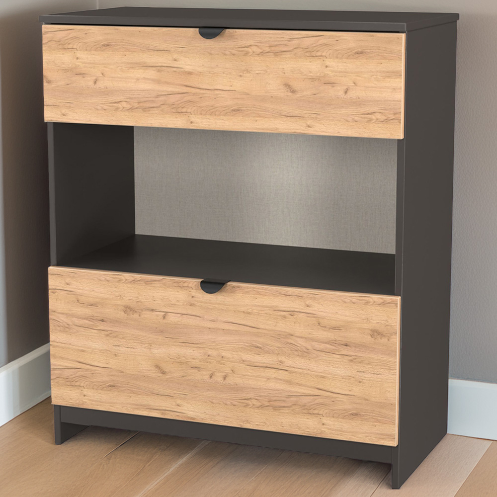 Crowndale Bora Gold Oak and Graphite 2 Drawer Single Shelf Deep Chest of Drawers