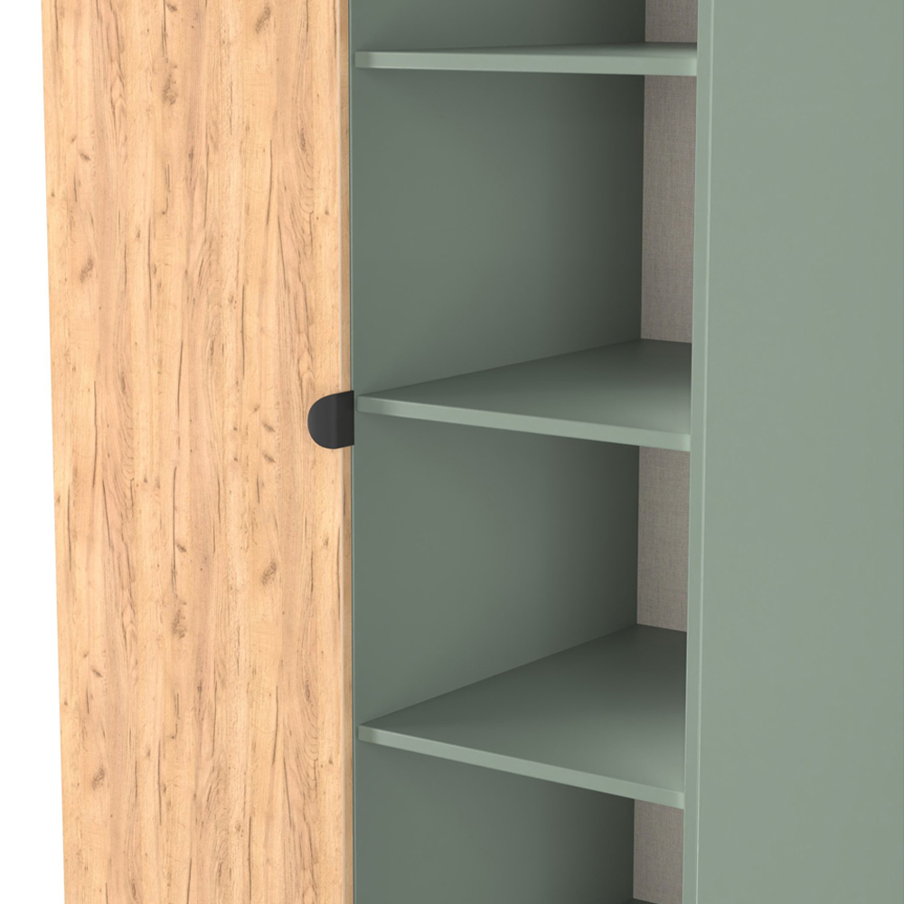 Crowndale Bora Gold Oak and Reed Green Single Door 6 Shelf Wardrobe