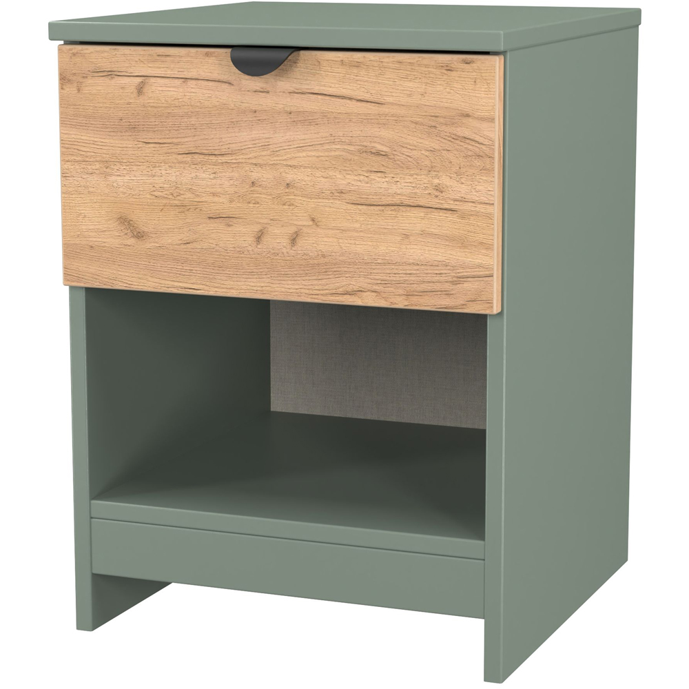 Crowndale Bora Gold Oak and Reed Green Single Drawer Single Shelf Bedside Table