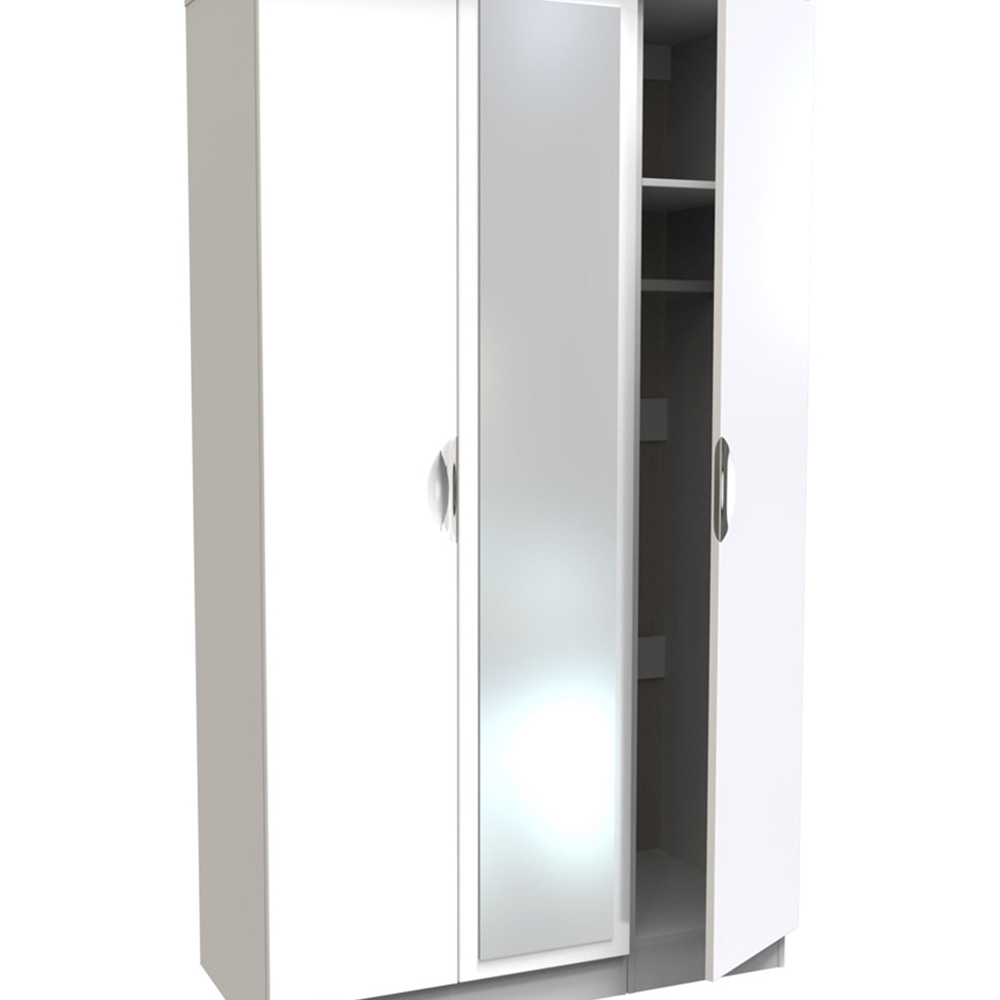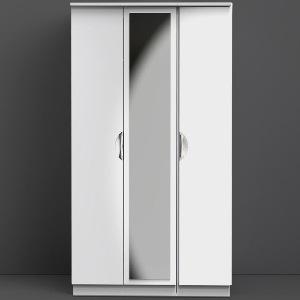 Crowndale Camden Ready Assembled 3 Door Gloss White Mirrored Wardrobe