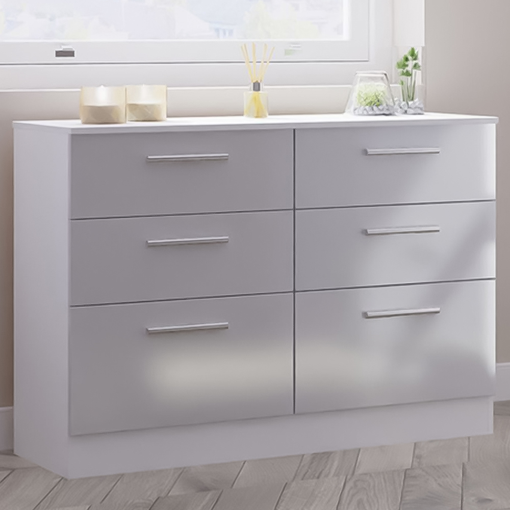 Crowndale Contrast Grey and White Matt 6 Drawer Midi Chest Ready Assembled