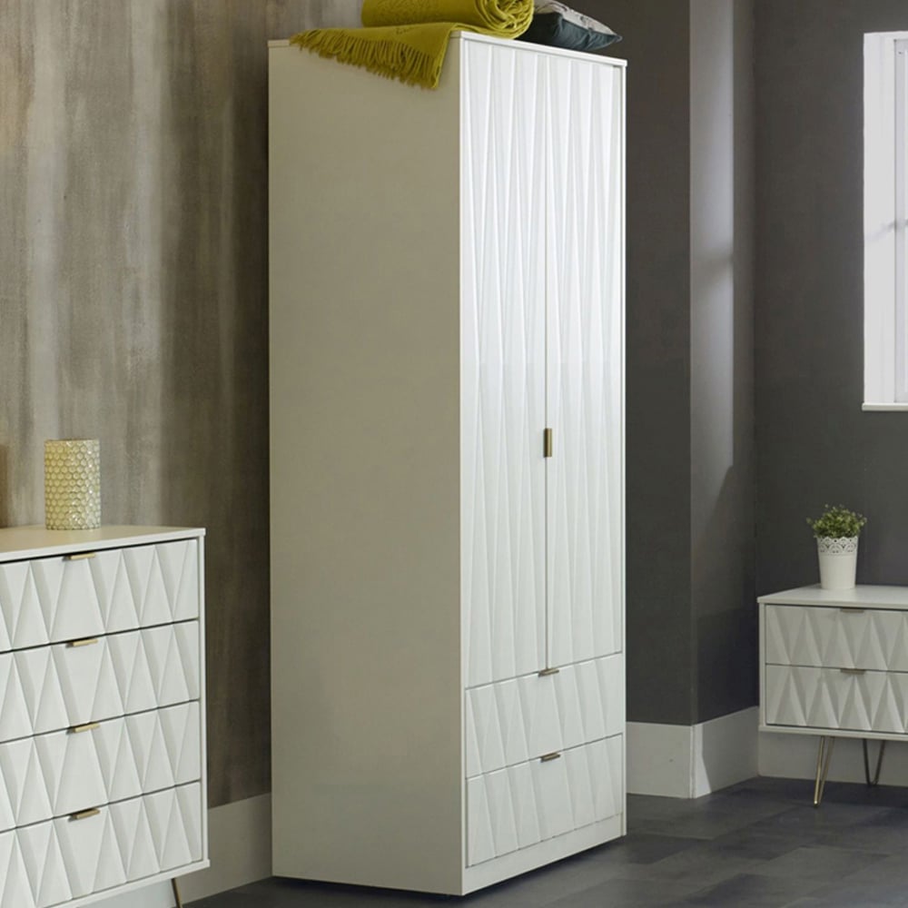 Crowndale Diamond Ready Assembled 2 Door 2 Drawer Matt White Tall Double Wardrobe
