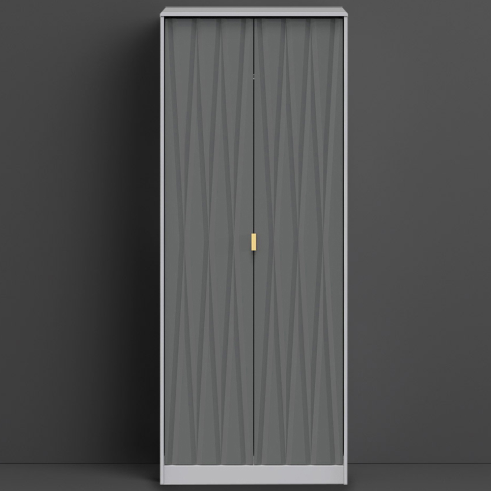 Crowndale Diamond Ready Assembled 2 Door Matt Shadow and Grey Tall Double Wardrobe