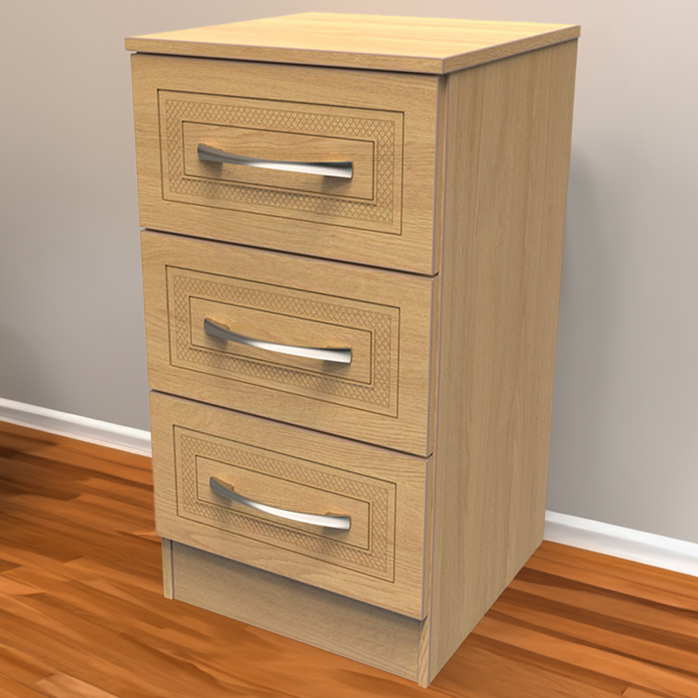 Crowndale Dorset 3 Drawer Modern Oak Bedside Cabinet Ready Assembled