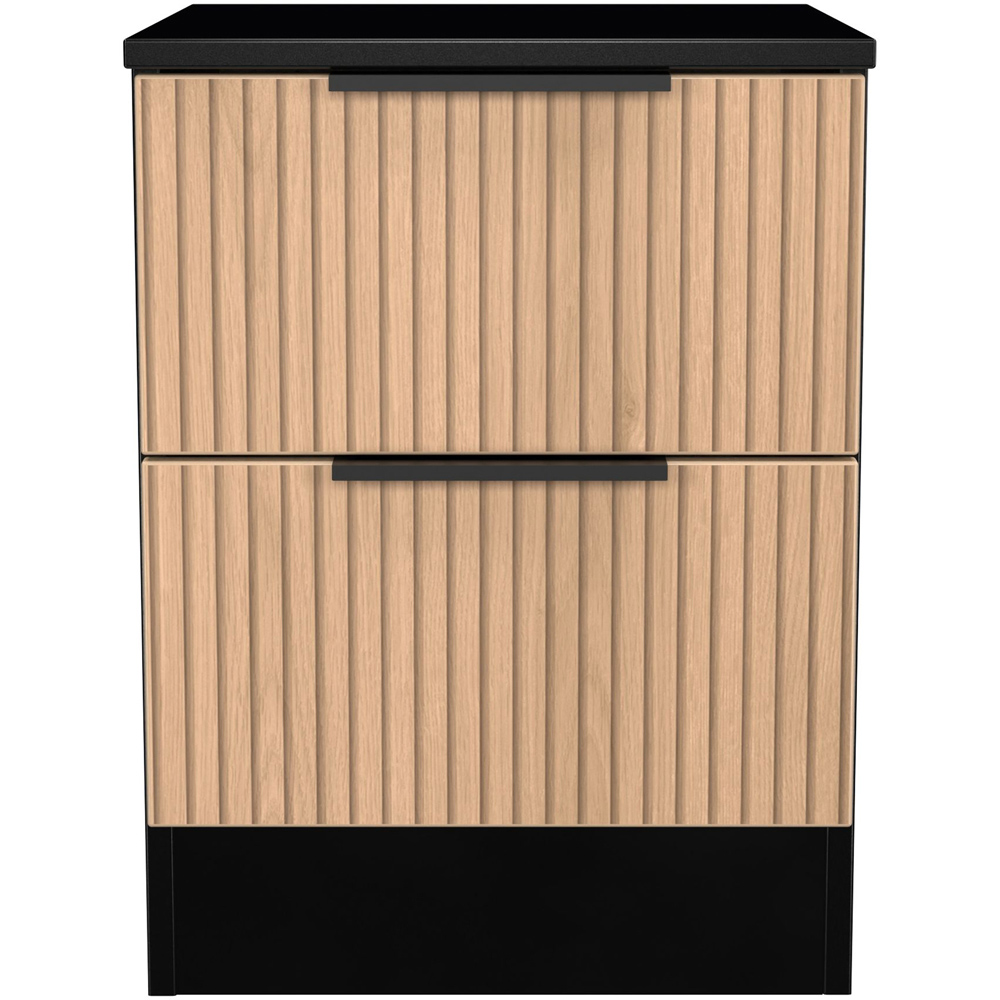 Crowndale Java Slatt Effect and Black 2 Drawer Compact Bedside Cabinet