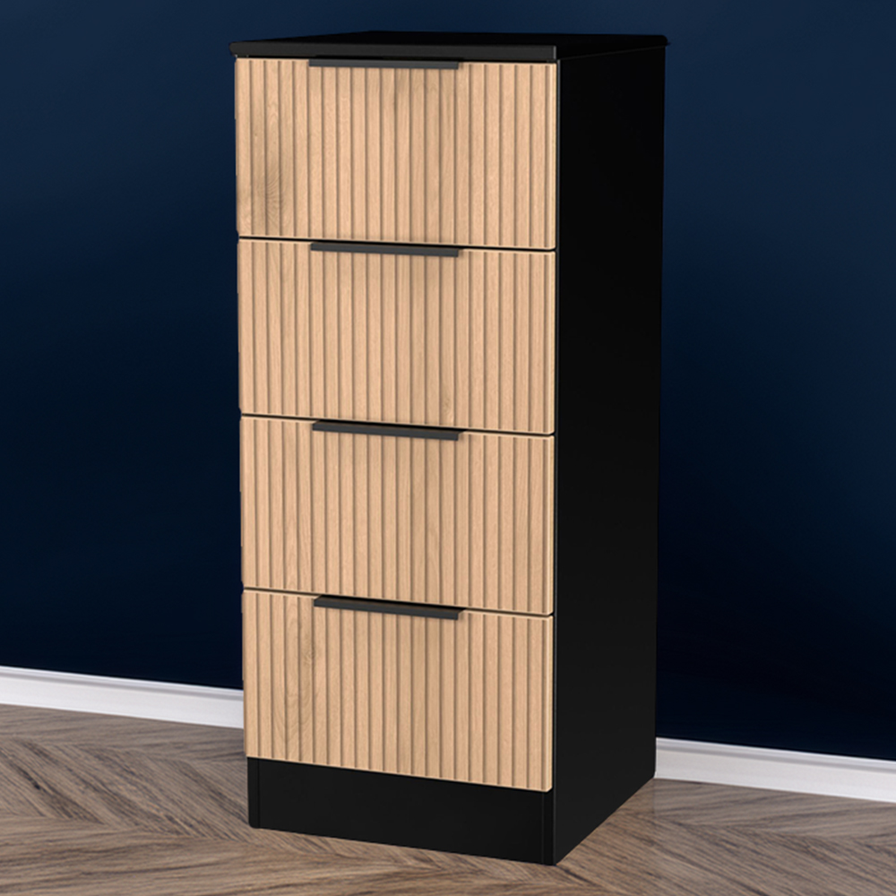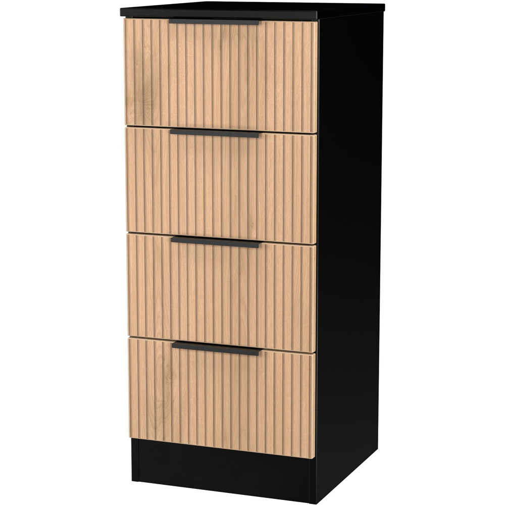 Crowndale Java Slatt Effect and Black 4 Drawer Bedside Cabinet