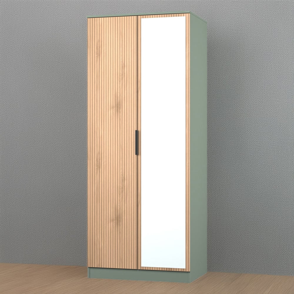 Crowndale Java Slatt Effect and Reed Green 2 Door Mirror Wardrobe