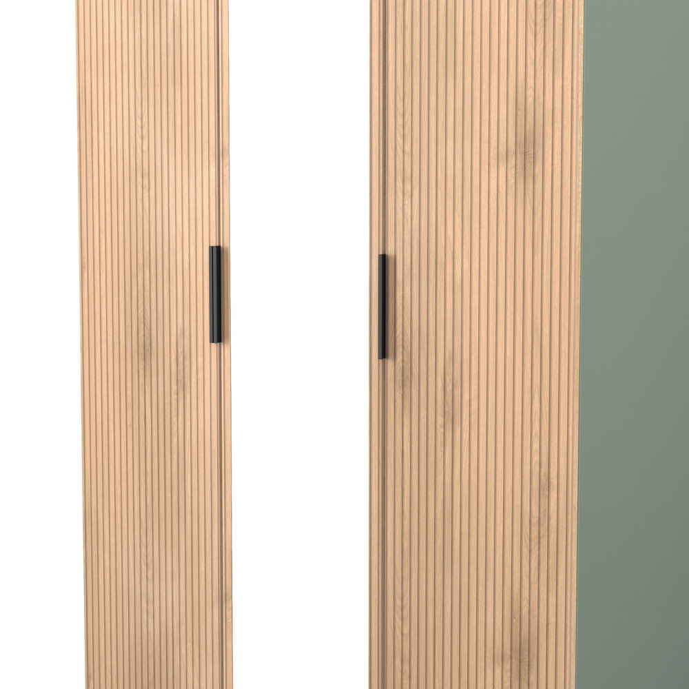 Crowndale Java Slatt Effect and Reed Green 3 Door Mirror Wardrobe