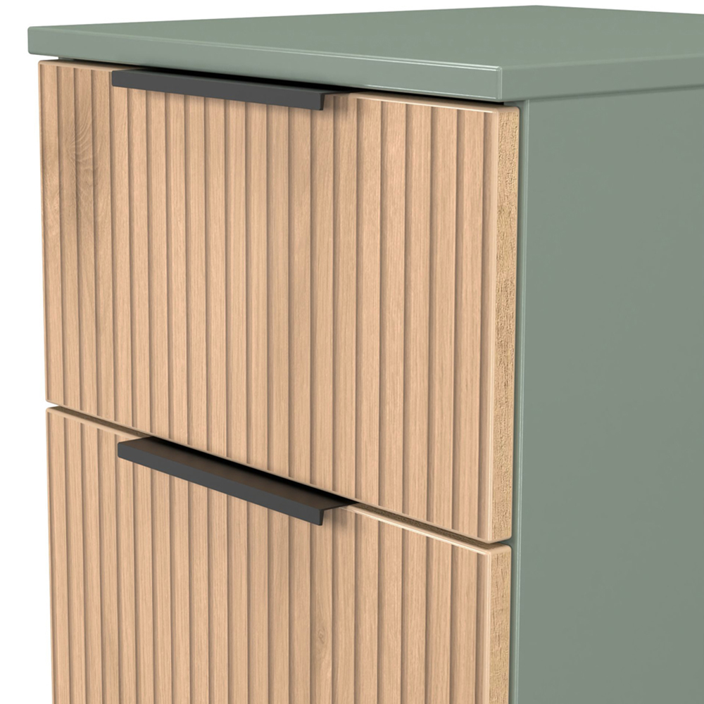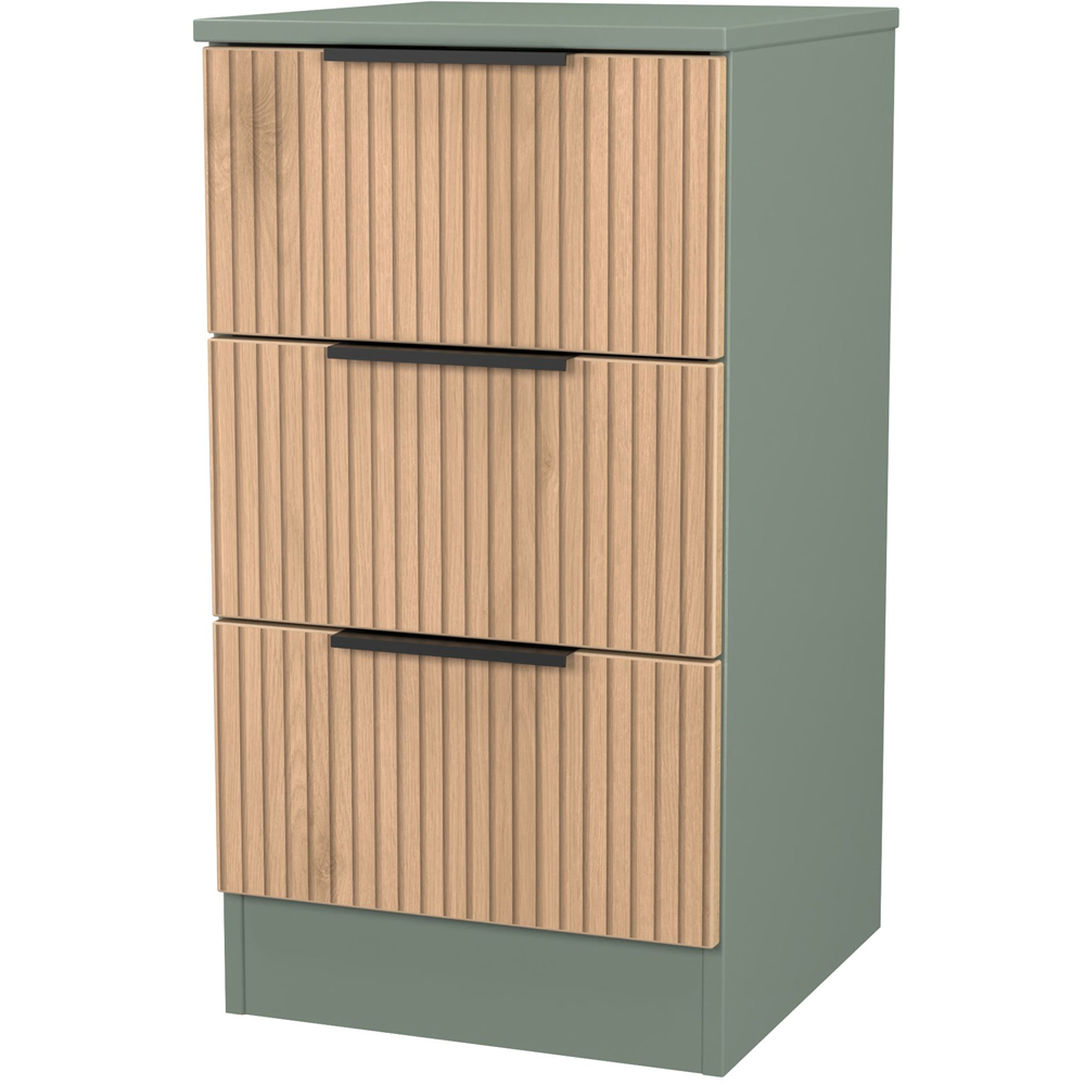 Crowndale Java Slatt Effect and Reed Green 3 Drawer Bedside Cabinet