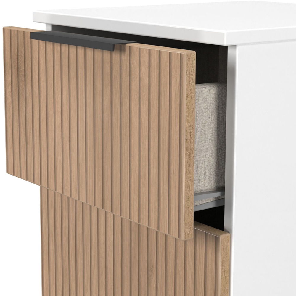 Crowndale Java Slatt Effect and White 3 Drawer Bedside Cabinet