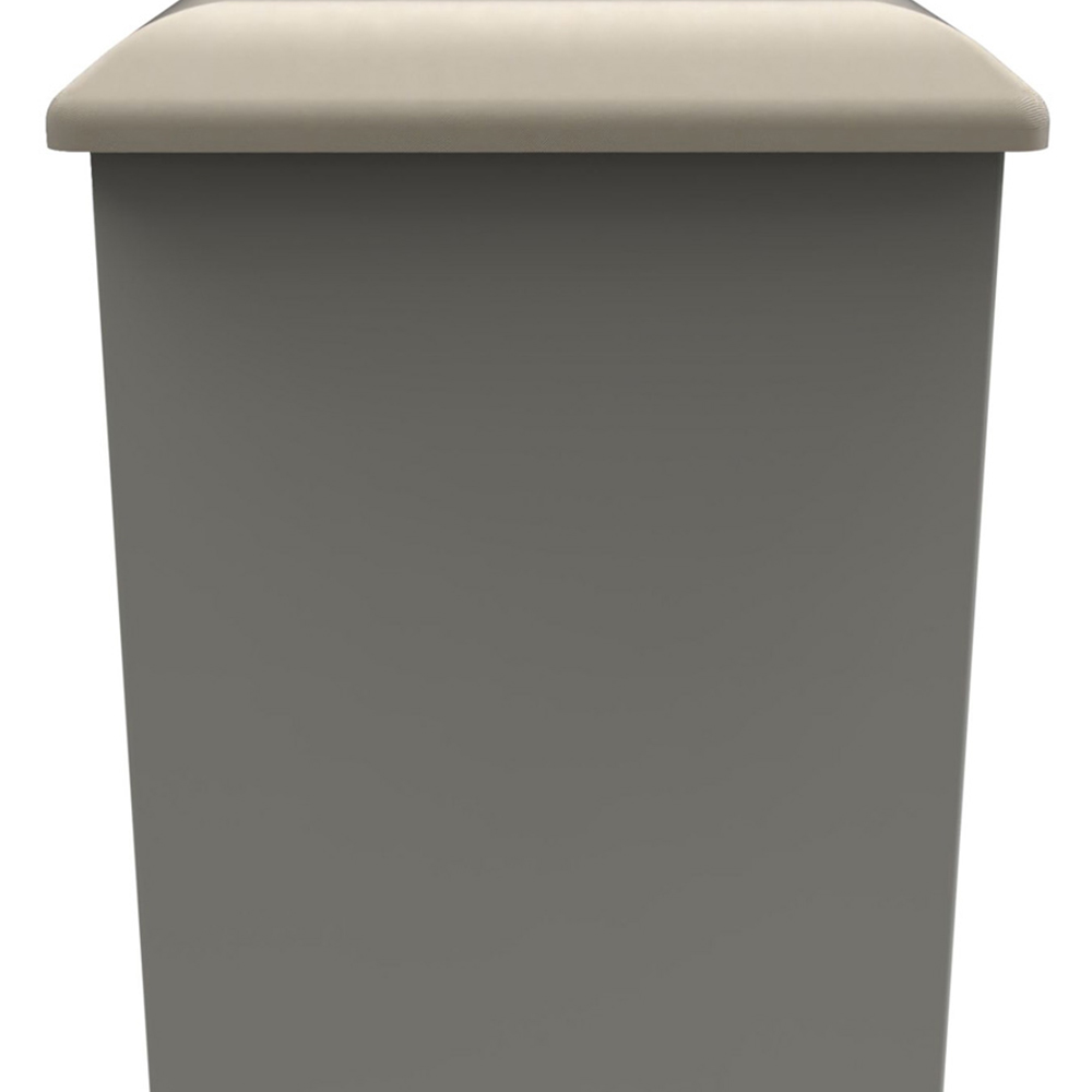 Elevate your dressing table with the Crowndale Kent Dusk Grey Stool. This elegant vanity stool brings understated sophistication to any space. Its light, simple design features a comfortably cushioned seat for lasting durability. Traditional edge finishes and a wood-effect top lend a timeless appeal, while brushed steel handles add a touch of modern contrast against the wood-grained fronts. Beautifully crafted, this fully assembled stool is ready to enhance your space instantly. Enjoy its classic charm and effortless style.