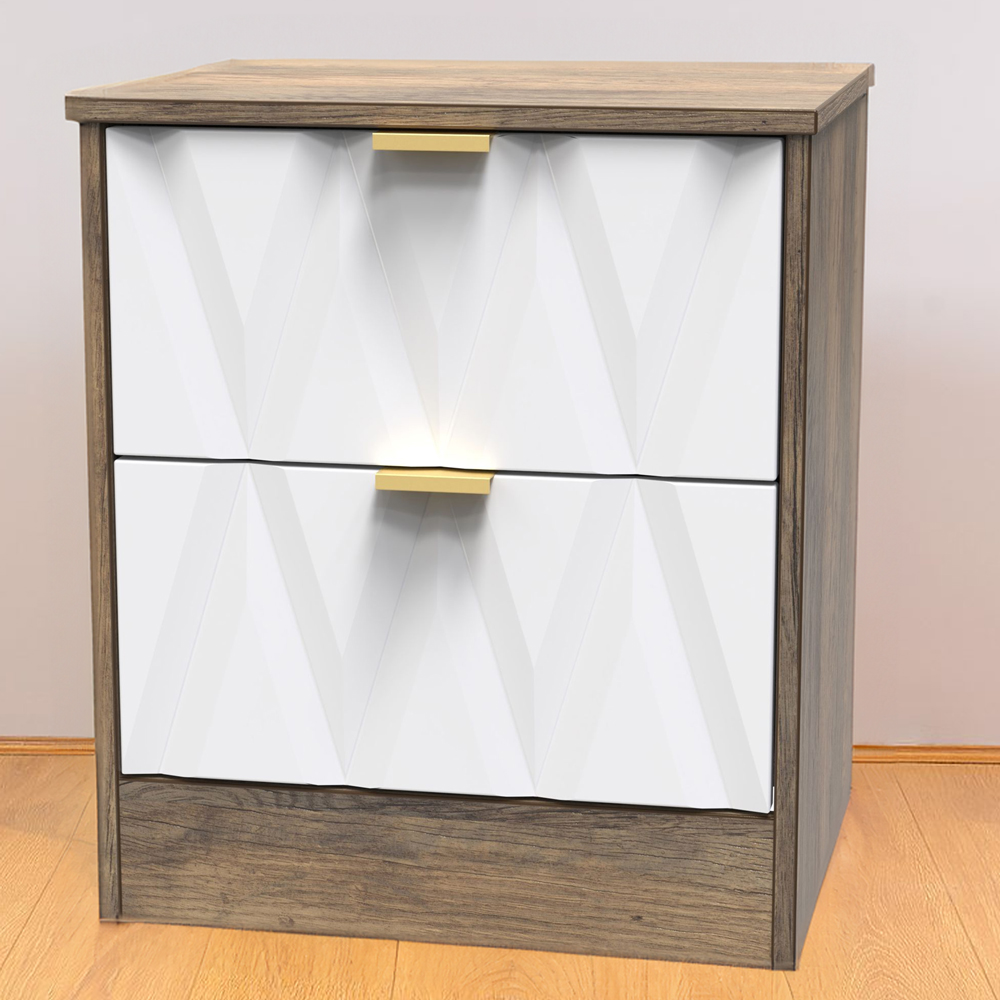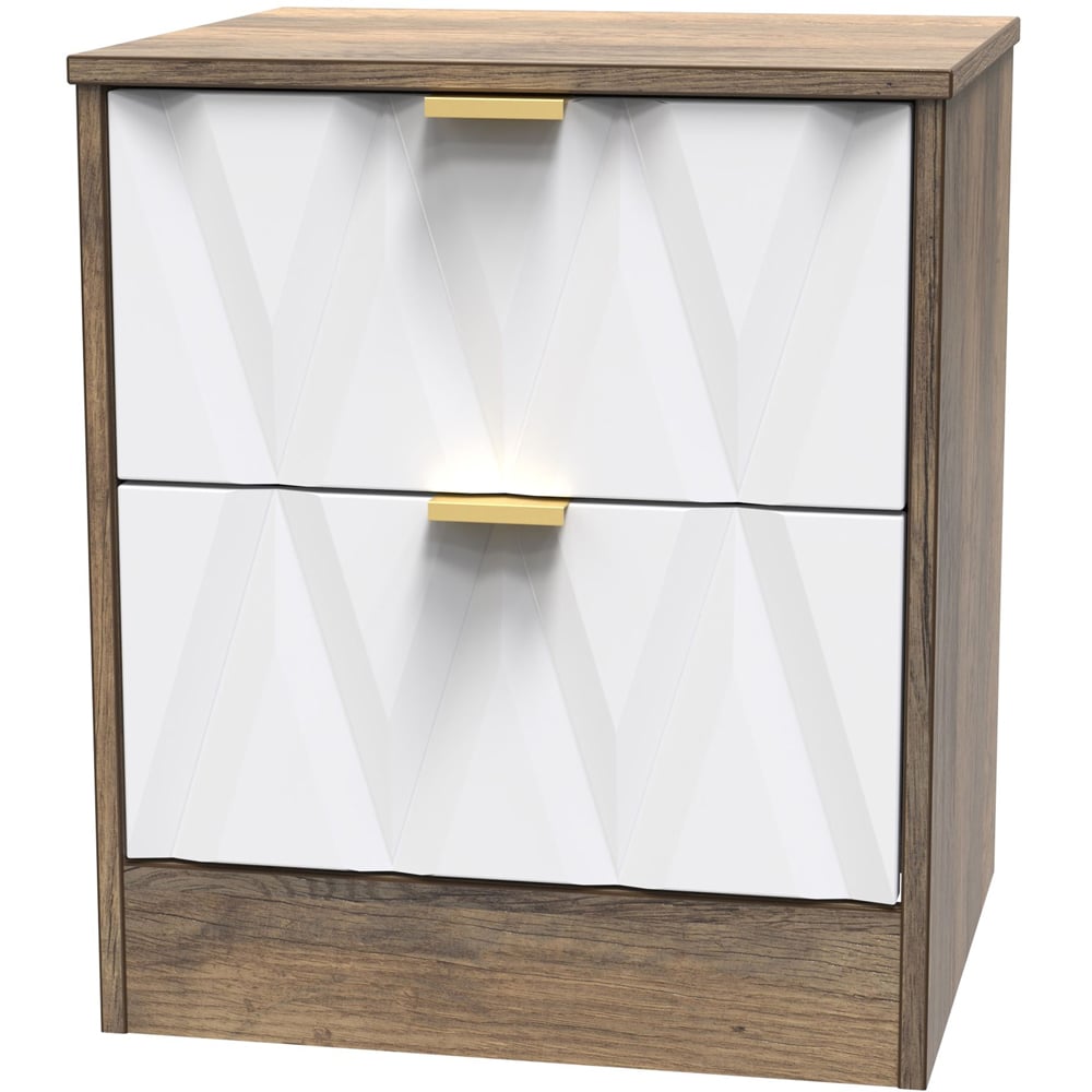 Crowndale Las Vegas 2 Drawer Matt White and Vintage Oak Bedside Table Ready Assembled