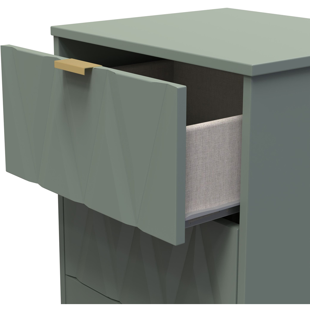 The Crowndale Las Vegas bedside table offers stylish bedroom storage in a reed green finish. Ideal for bedside use or as a freestanding unit, its distinctive front design complements any décor. This two-drawer table provides convenient storage solutions.