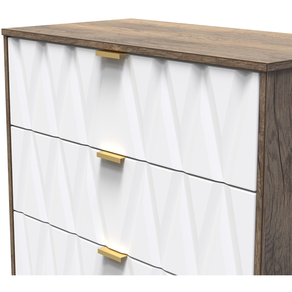 Crowndale Las Vegas 3 Drawer Matt White and Vintage Oak Chest of Drawers Ready Assembled