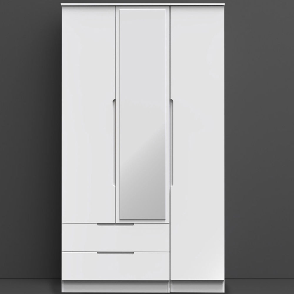 Crowndale Milan 3 Door 2 Drawer Gloss White Tall Mirror Wardrobe