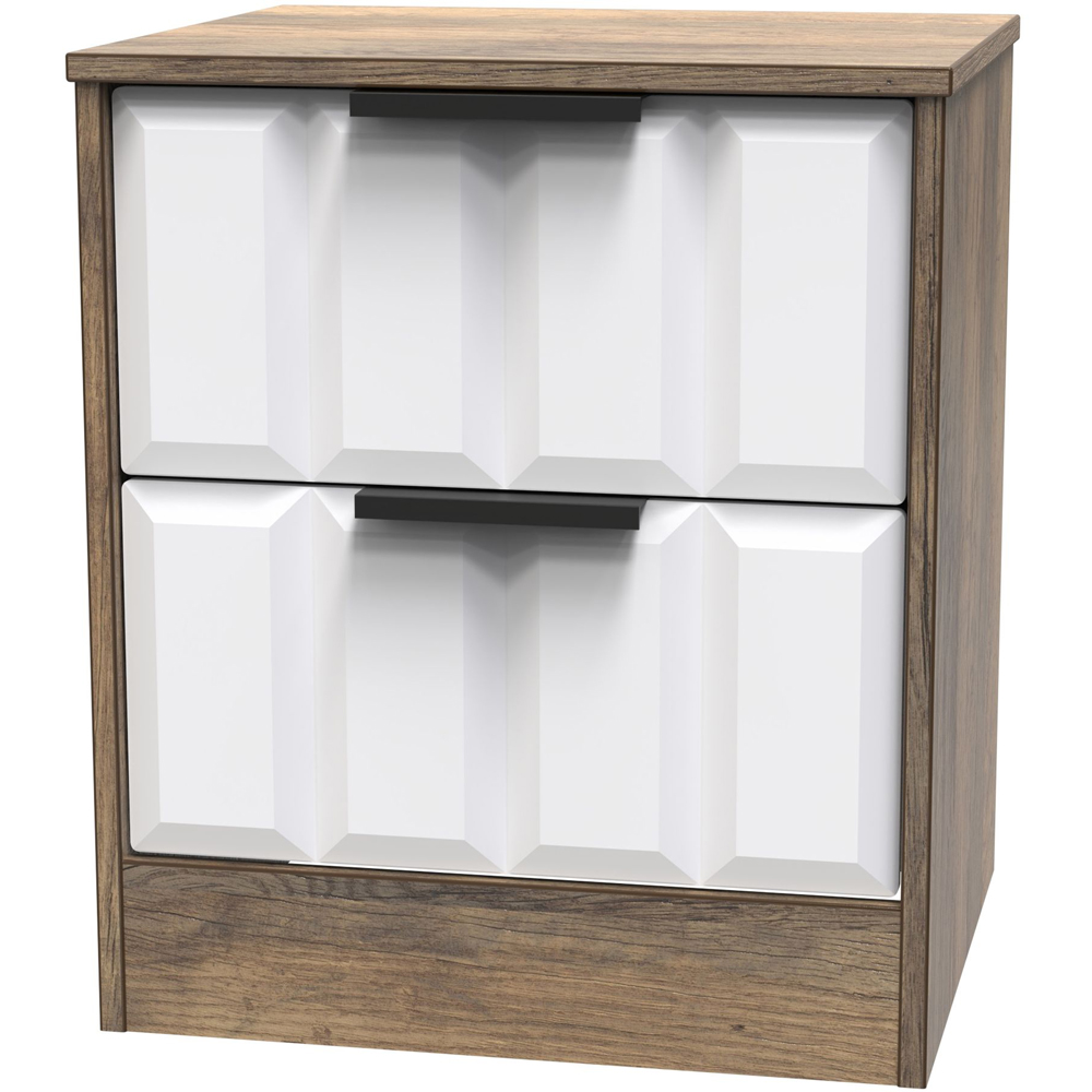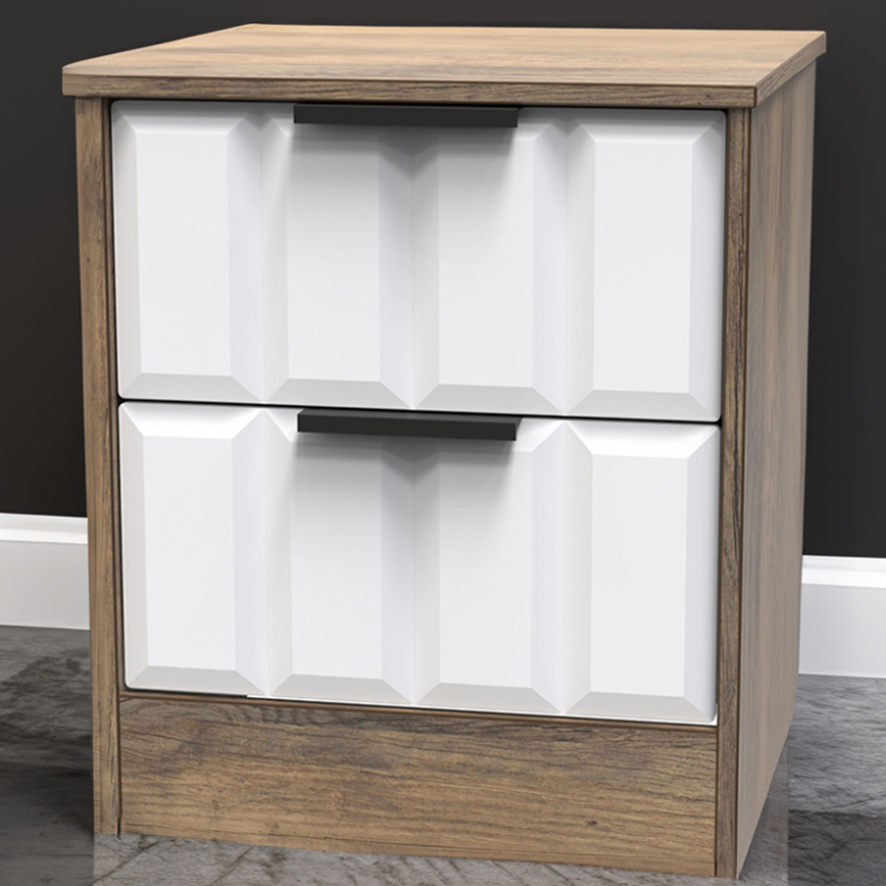 Crowndale New York 2 Drawer White Matt and Vintage Oak Bedside Cabinet Ready Assembled